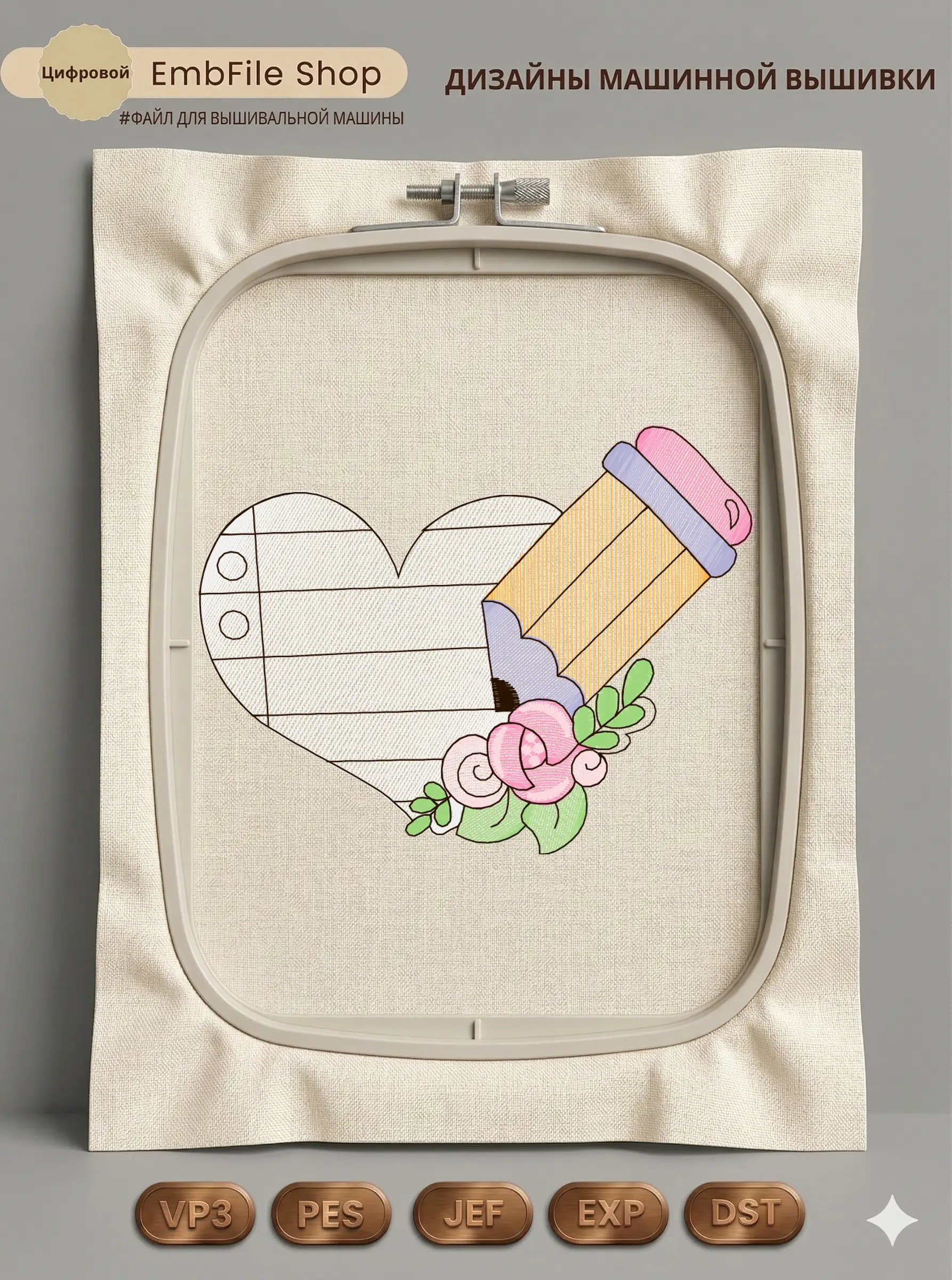 Дизайн машинной вышивки. Любовь (Размер 100×77мм). Форматы: DST PES JEF VP3 EXP XXX . Стежков: 5677