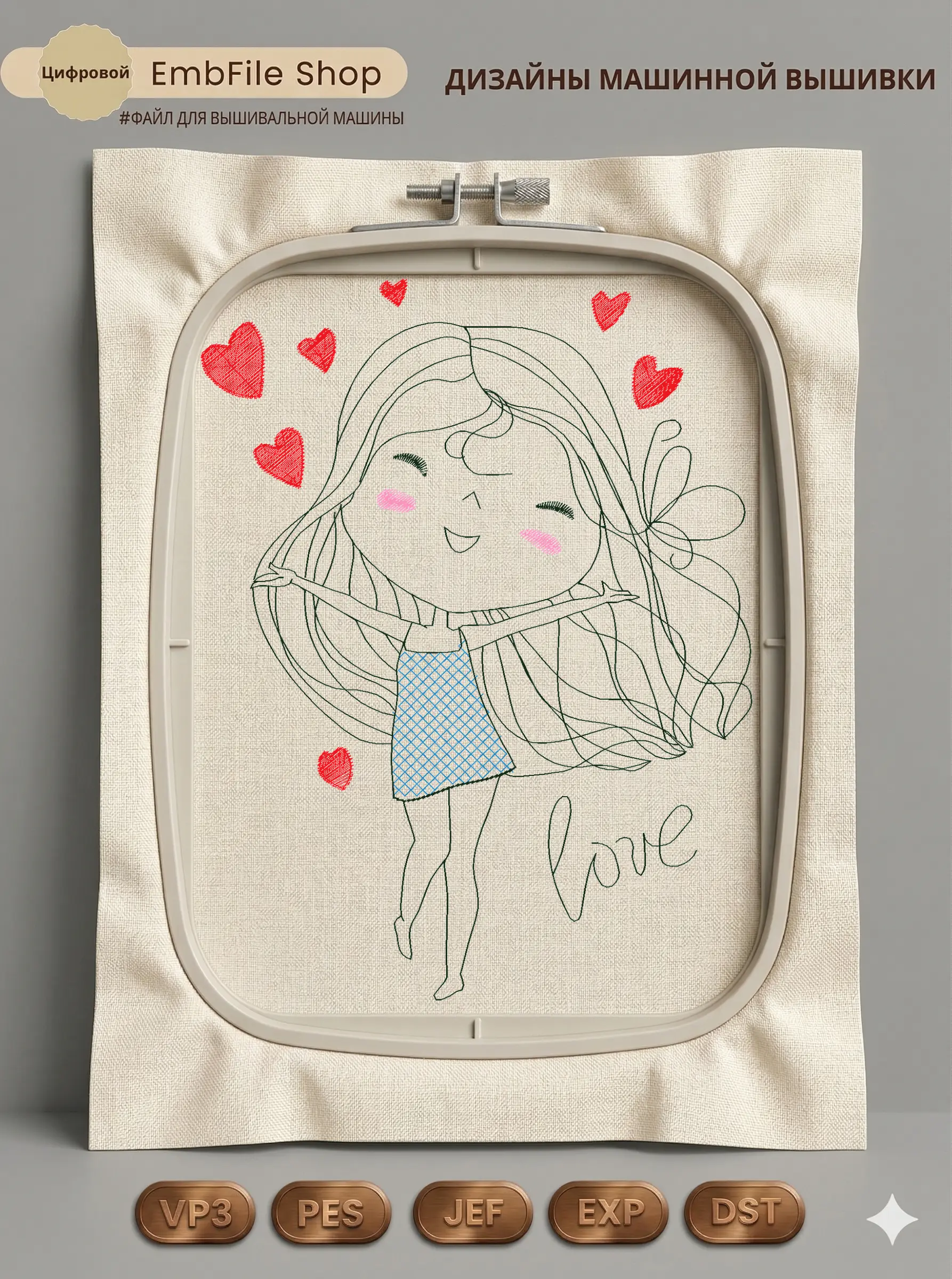 Это цифровой файл для вышивальной машины, а не физический товар (нашивка). Для работы с файлом вам необходимо иметь вышивальную машину и способ передачи файла на устройство (USB-флешка и т.д.).