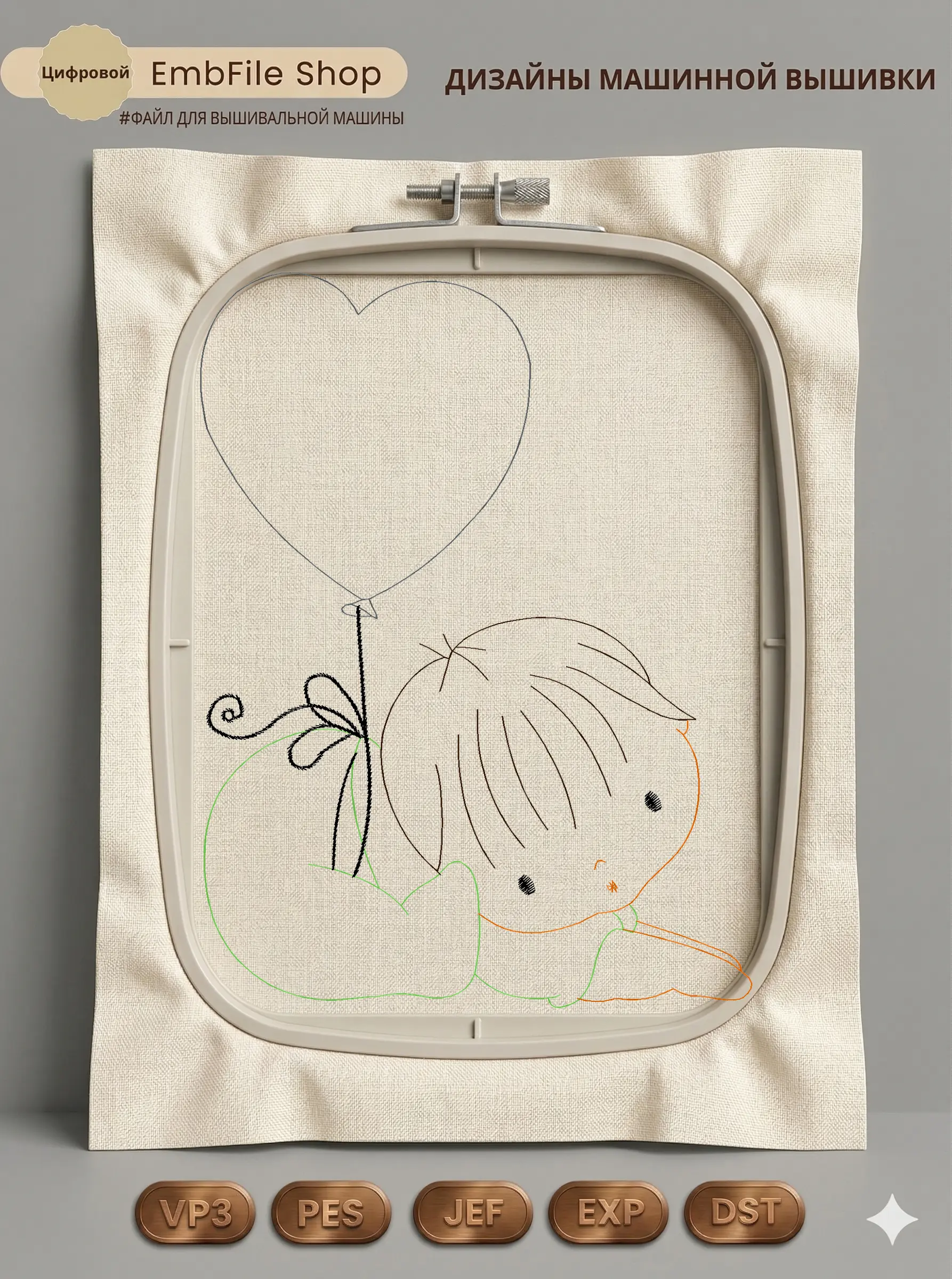 Это цифровой файл для вышивальной машины, а не физический товар (нашивка). Для работы с файлом вам необходимо иметь вышивальную машину и способ передачи файла на устройство (USB-флешка и т.д.).
