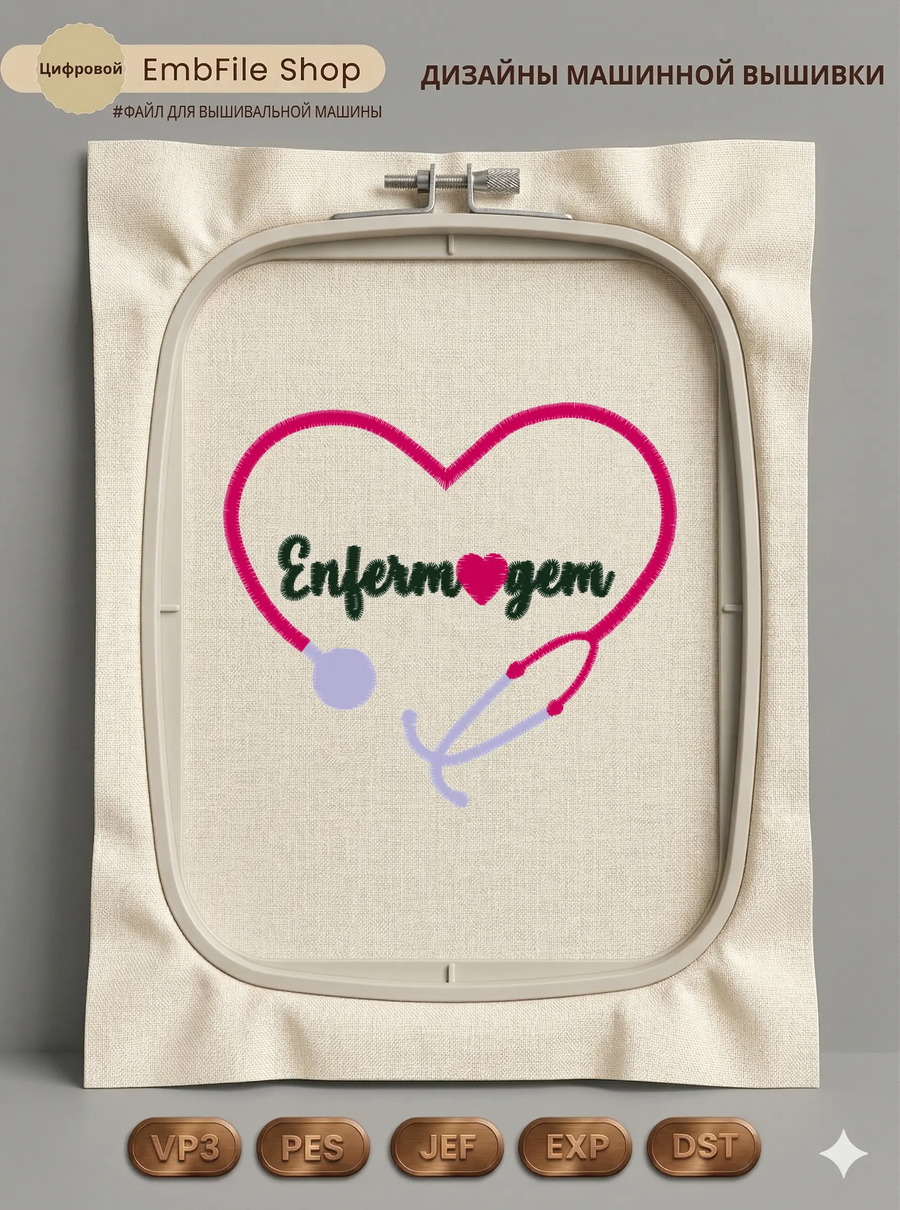 Это цифровой файл для вышивальной машины, а не физический товар (нашивка). Для работы с файлом вам необходимо иметь вышивальную машину и способ передачи файла на устройство (USB-флешка и т.д.).
