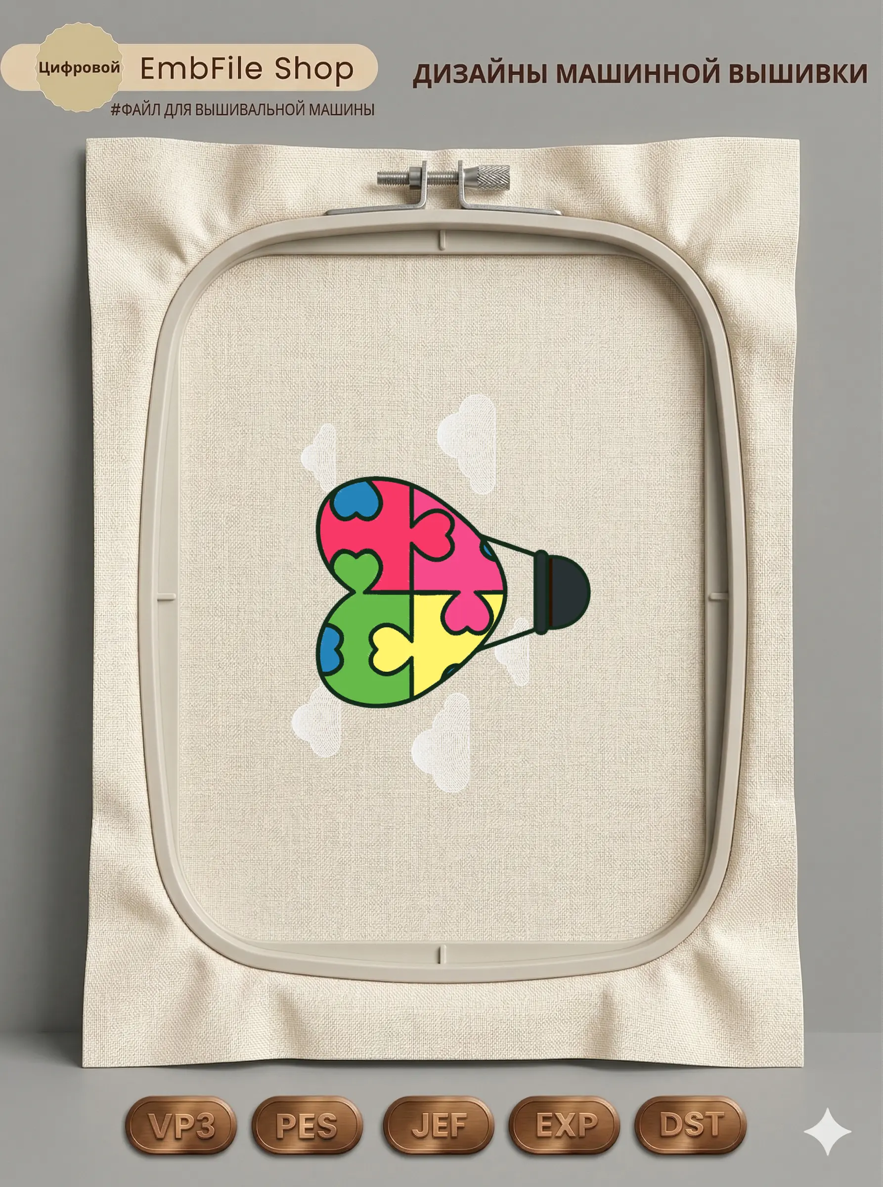 Это цифровой файл для вышивальной машины, а не физический товар (нашивка). Для работы с файлом вам необходимо иметь вышивальную машину и способ передачи файла на устройство (USB-флешка и т.д.).