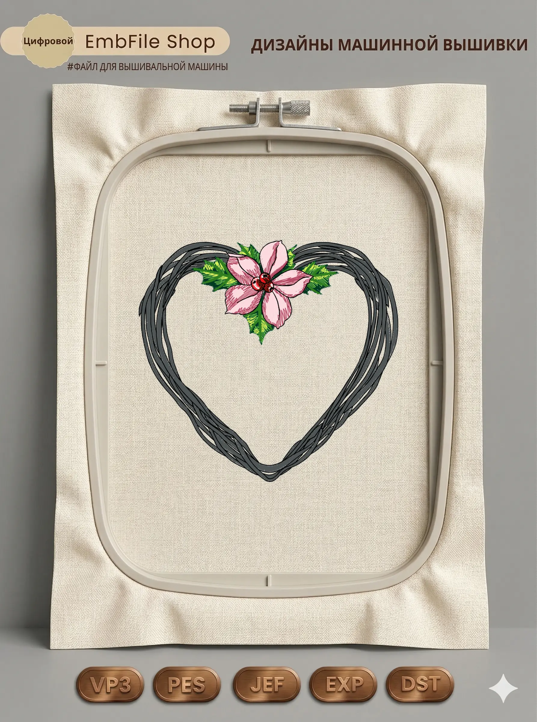Это цифровой файл для вышивальной машины, а не физический товар (нашивка). Для работы с файлом вам необходимо иметь вышивальную машину и способ передачи файла на устройство (USB-флешка и т.д.).