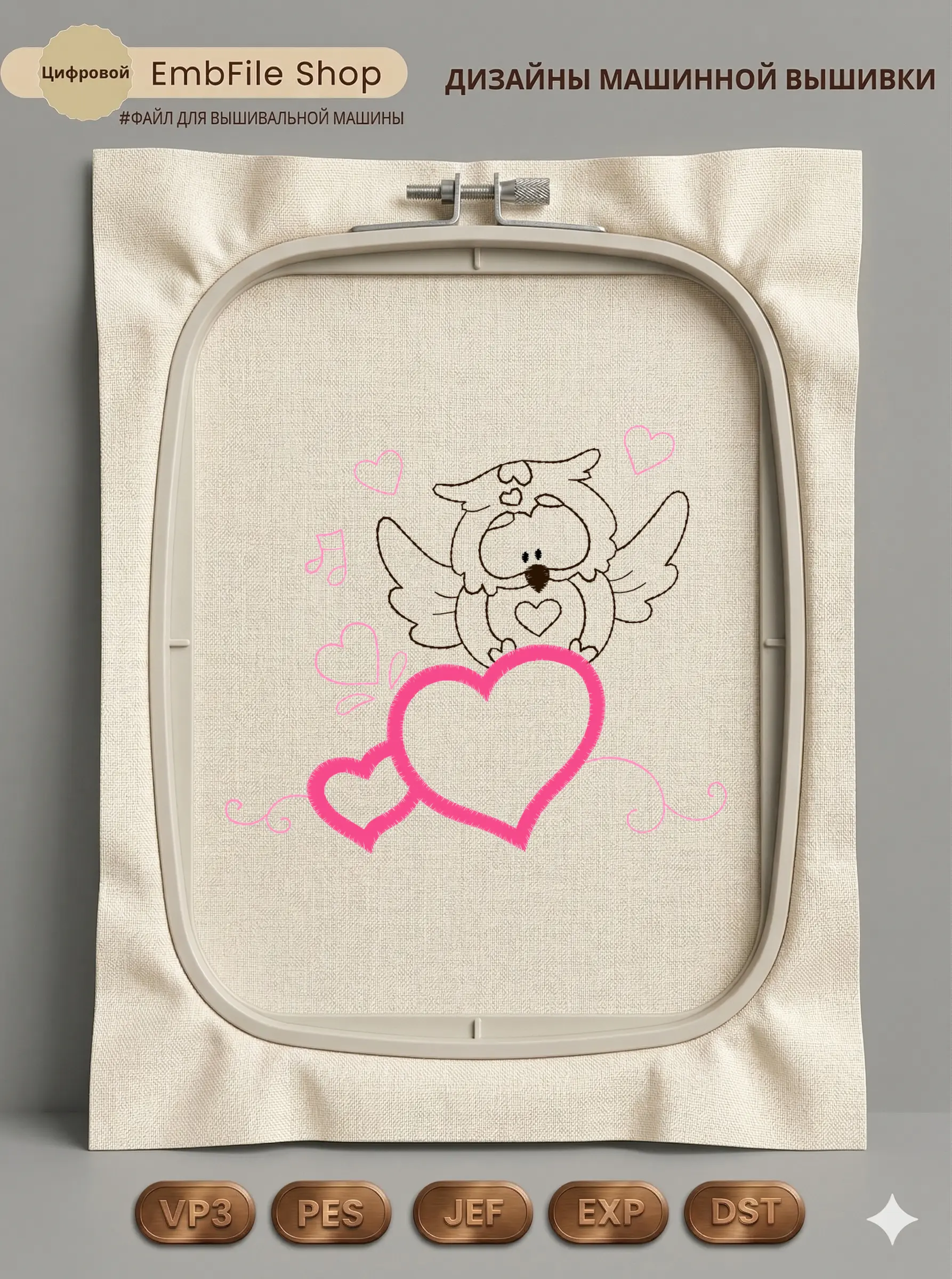 Дизайн машинной вышивки. Любовь (Размер 124×106мм). Форматы: DST PES JEF VP3 EXP XXX . Стежков: 4115