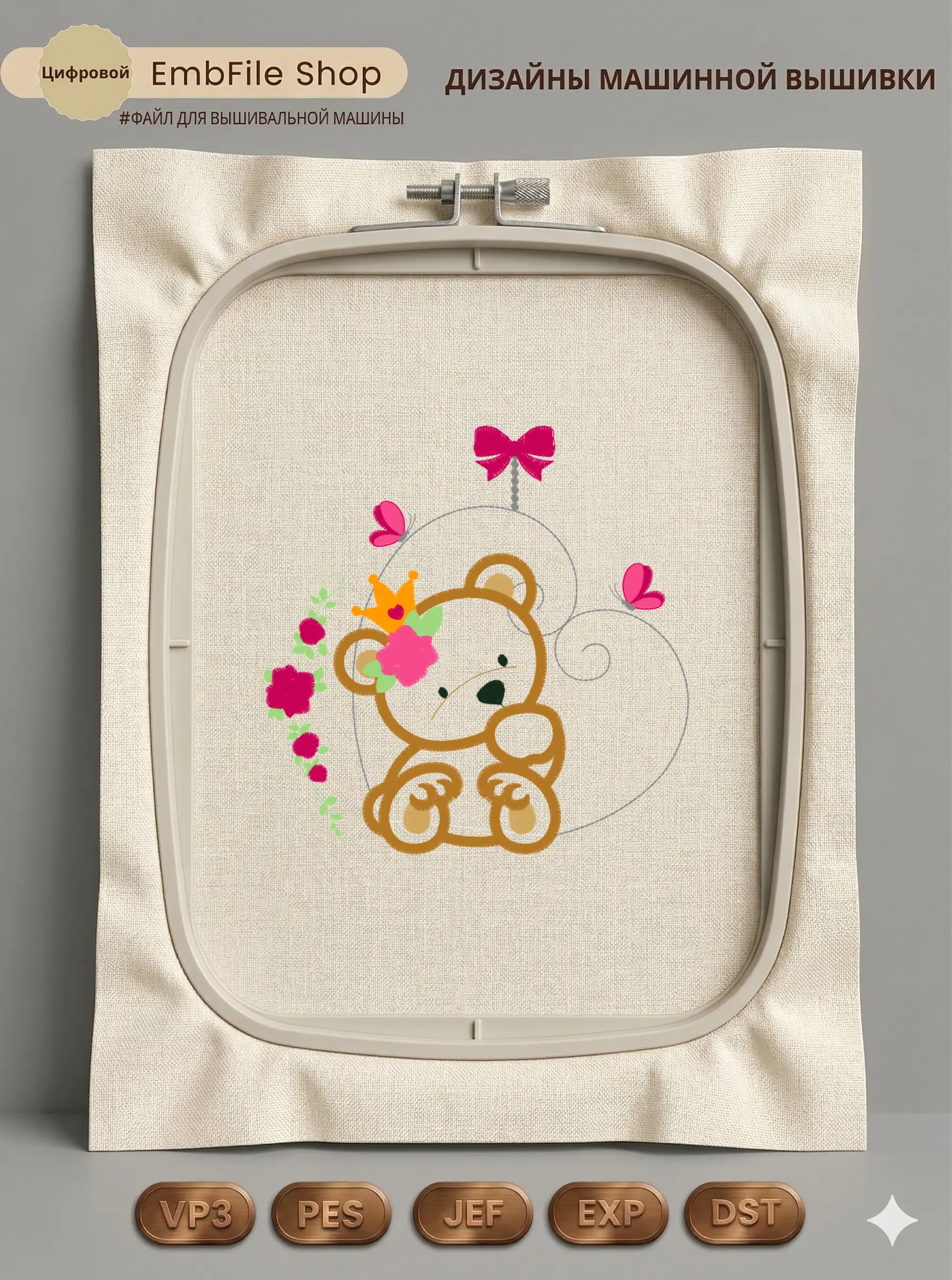 Дизайн протестирован на различных типах тканей, что гарантирует чистое и стабильное нанесение стежков.