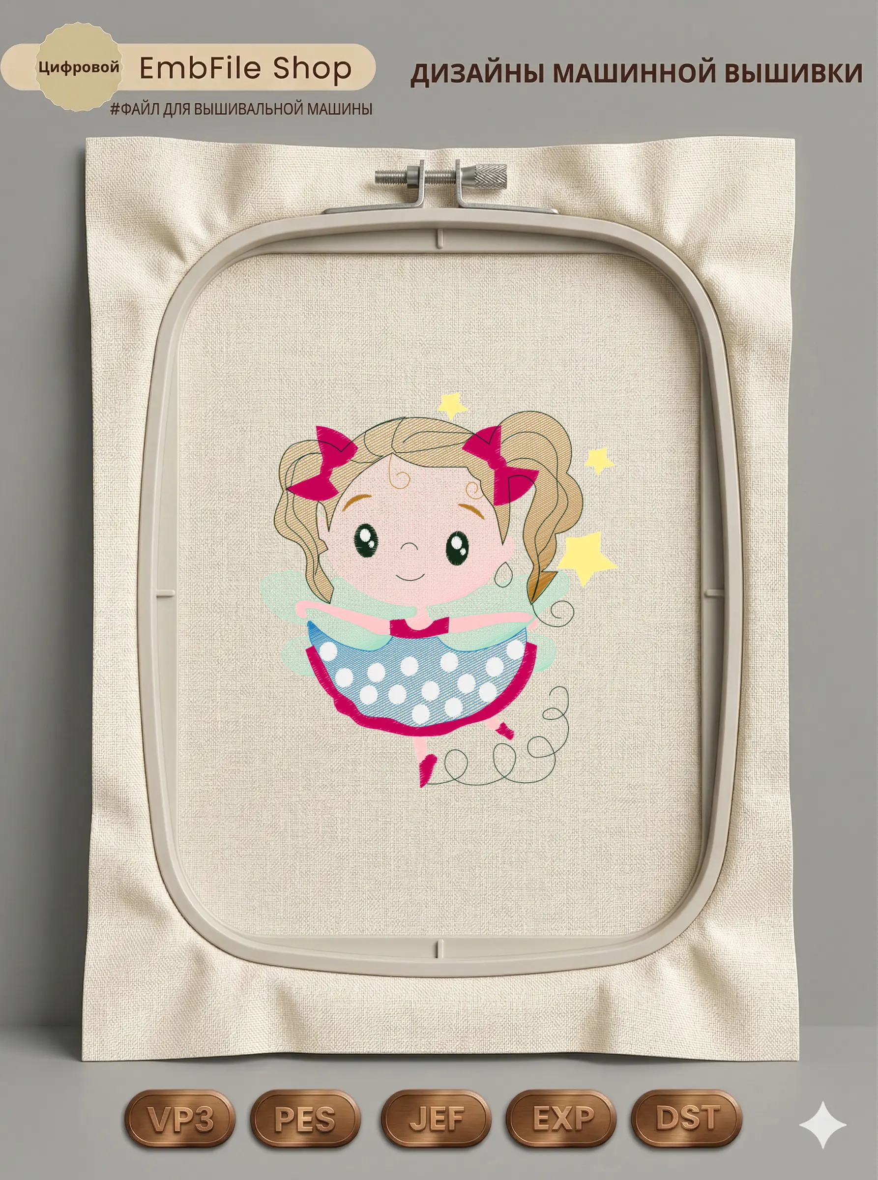 Это цифровой файл для вышивальной машины, а не физический товар (нашивка). Для работы с файлом вам необходимо иметь вышивальную машину и способ передачи файла на устройство (USB-флешка и т.д.).