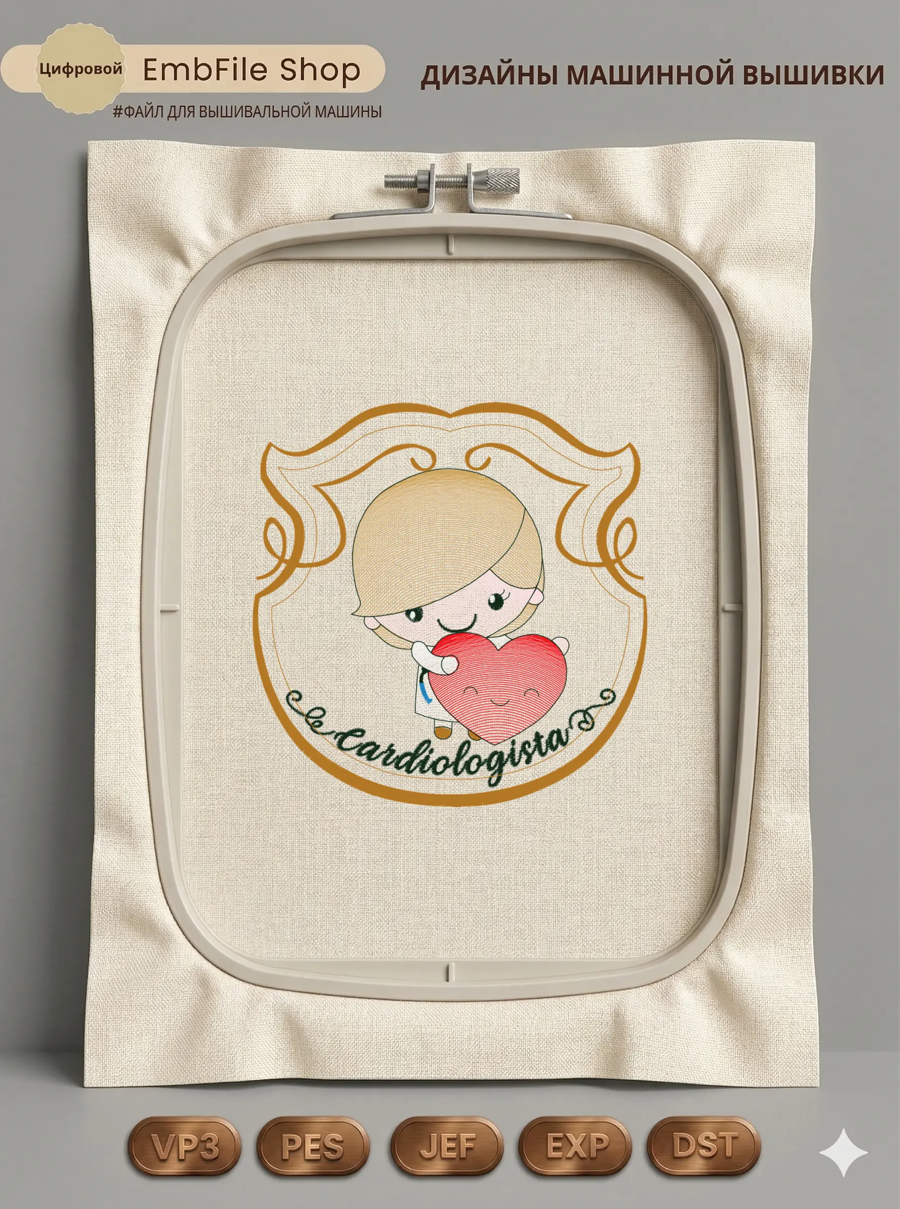 Это цифровой файл для вышивальной машины, а не физический товар (нашивка). Для работы с файлом вам необходимо иметь вышивальную машину и способ передачи файла на устройство (USB-флешка и т.д.).