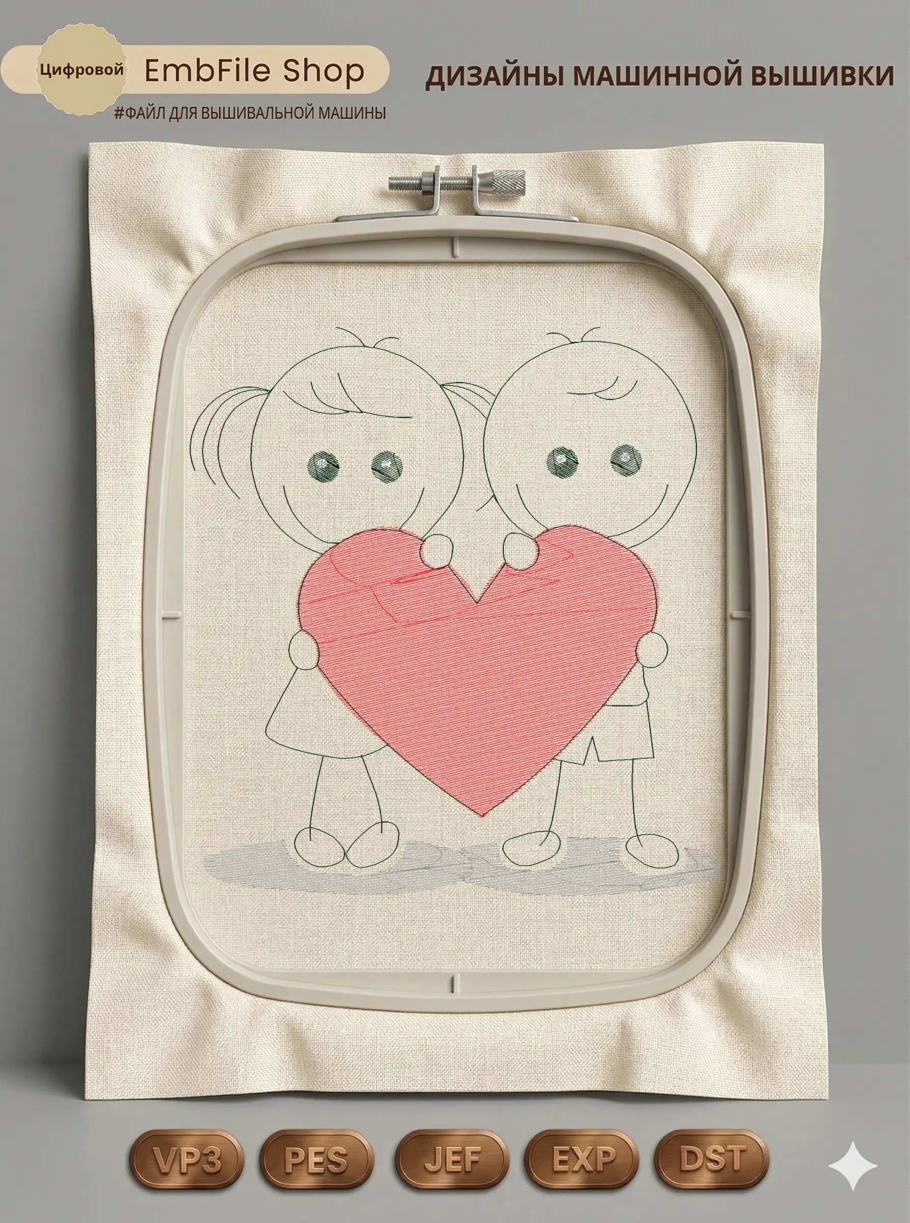 Дизайн машинной вышивки. Любовь (Размер 130×139мм). Форматы: DST PES JEF VP3 EXP XXX . Стежков: 8664