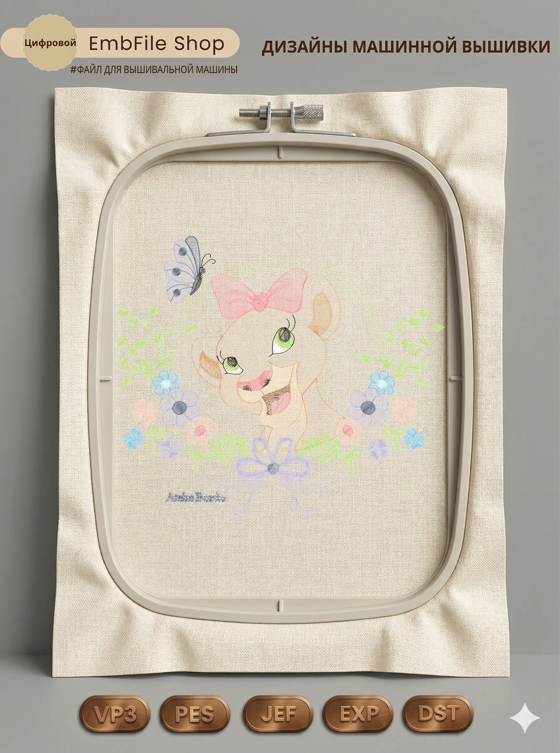 Это цифровой файл для вышивальной машины, а не физический товар (нашивка). Для работы с файлом вам необходимо иметь вышивальную машину и способ передачи файла на устройство (USB-флешка и т.д.).