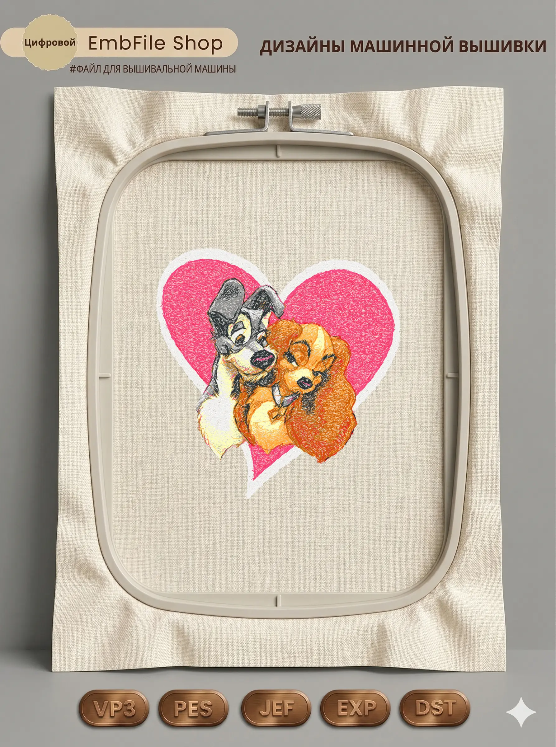Дизайн машинной вышивки. Любовь (Размер 188×193мм). Форматы: DST PES JEF VP3 EXP XXX . Стежков: 56495