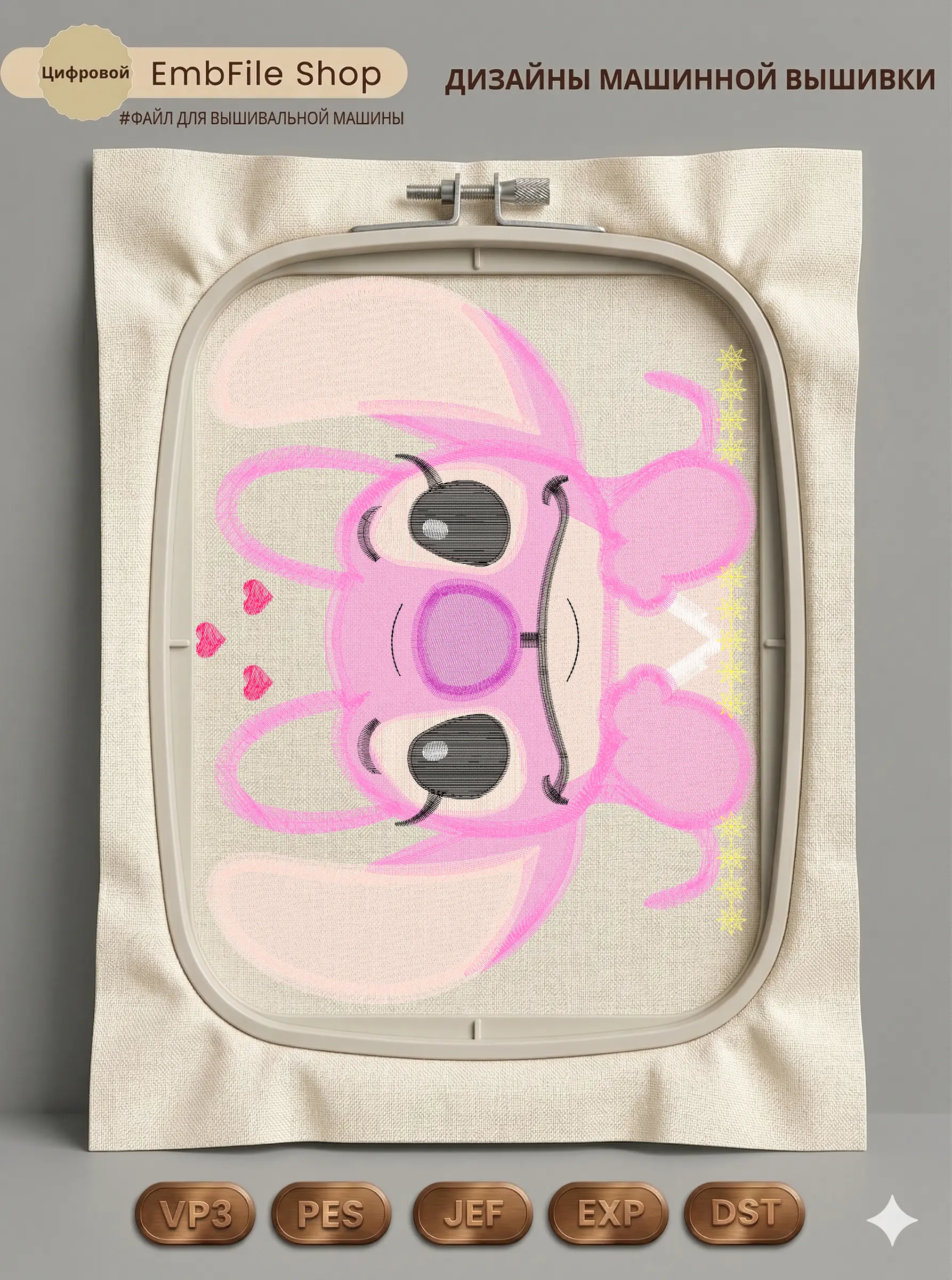 Это цифровой файл для вышивальной машины, а не физический товар (нашивка). Для работы с файлом вам необходимо иметь вышивальную машину и способ передачи файла на устройство (USB-флешка и т.д.).