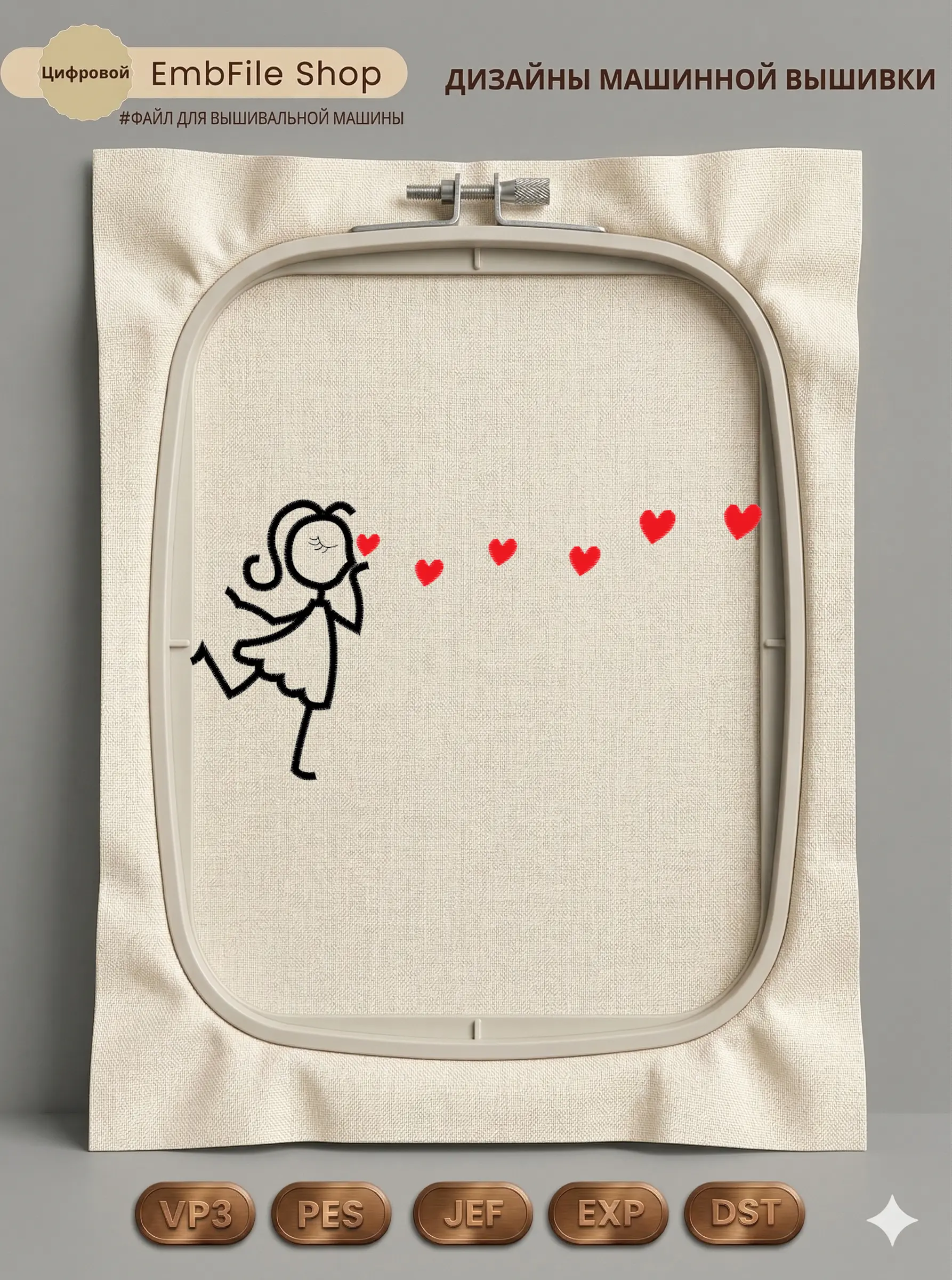 Дизайн протестирован на различных типах тканей, что гарантирует чистое и стабильное нанесение стежков.