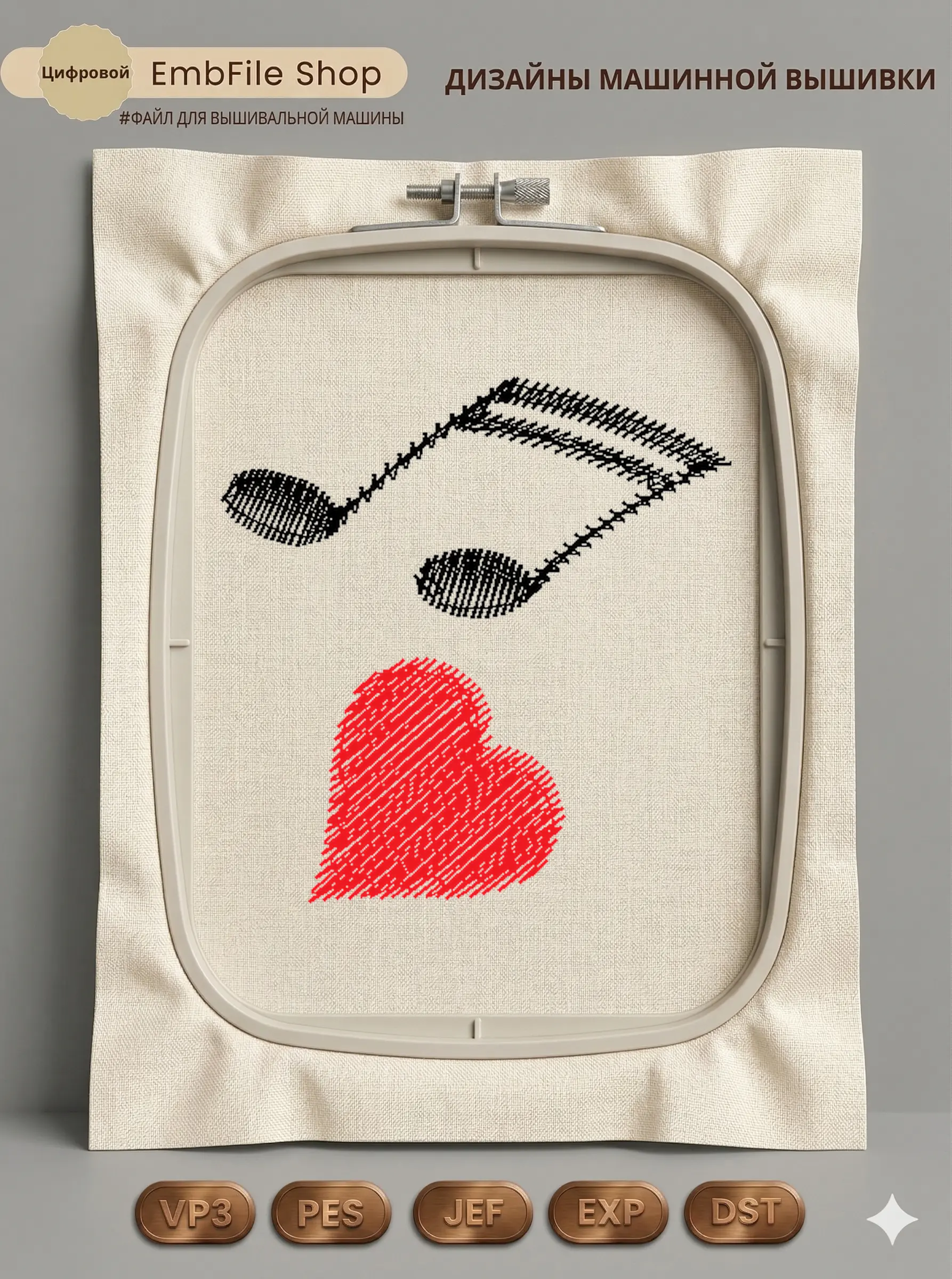 Это цифровой файл для вышивальной машины, а не физический товар (нашивка). Для работы с файлом вам необходимо иметь вышивальную машину и способ передачи файла на устройство (USB-флешка и т.д.).