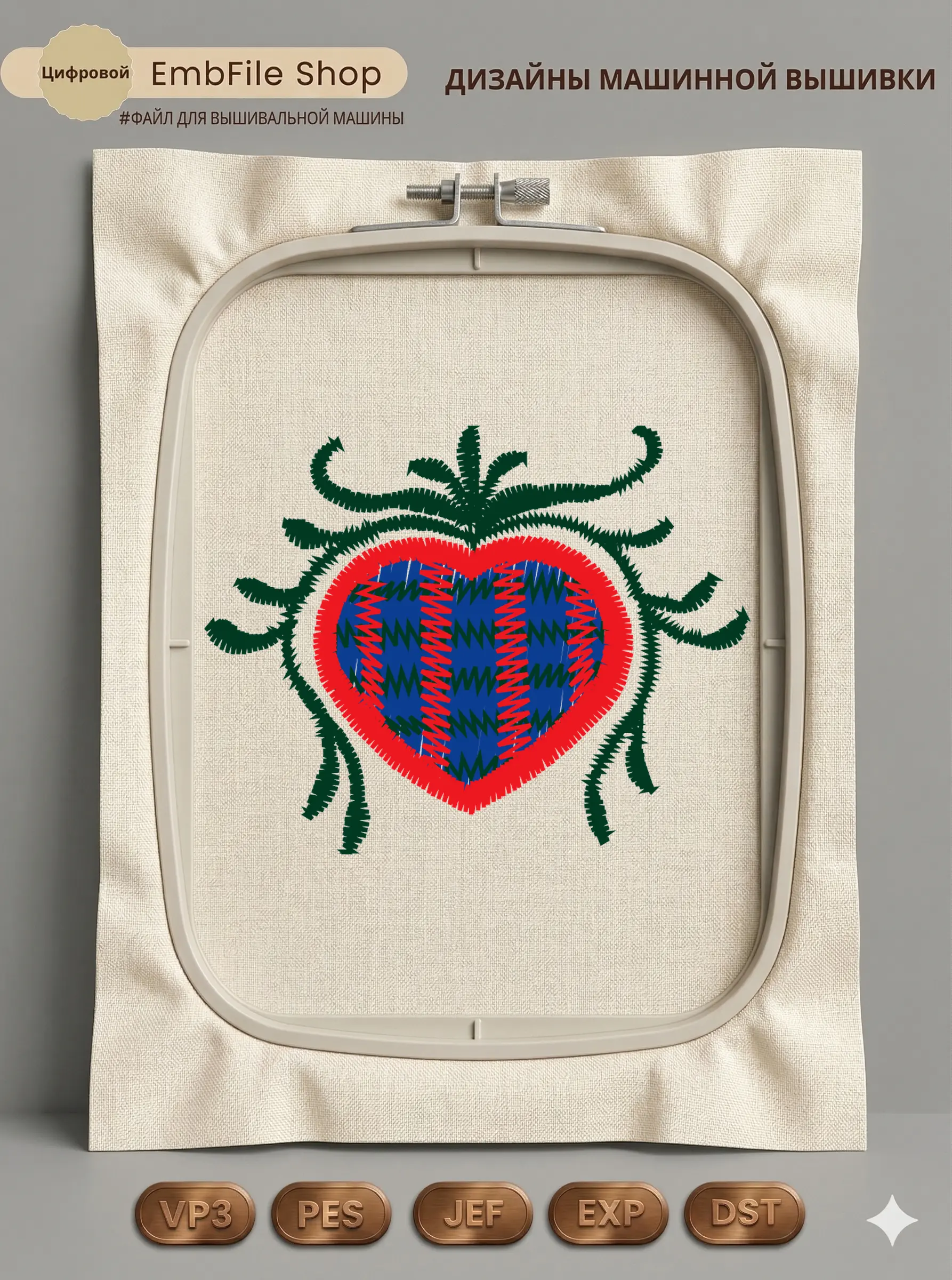 Это цифровой файл для вышивальной машины, а не физический товар (нашивка). Для работы с файлом вам необходимо иметь вышивальную машину и способ передачи файла на устройство (USB-флешка и т.д.).