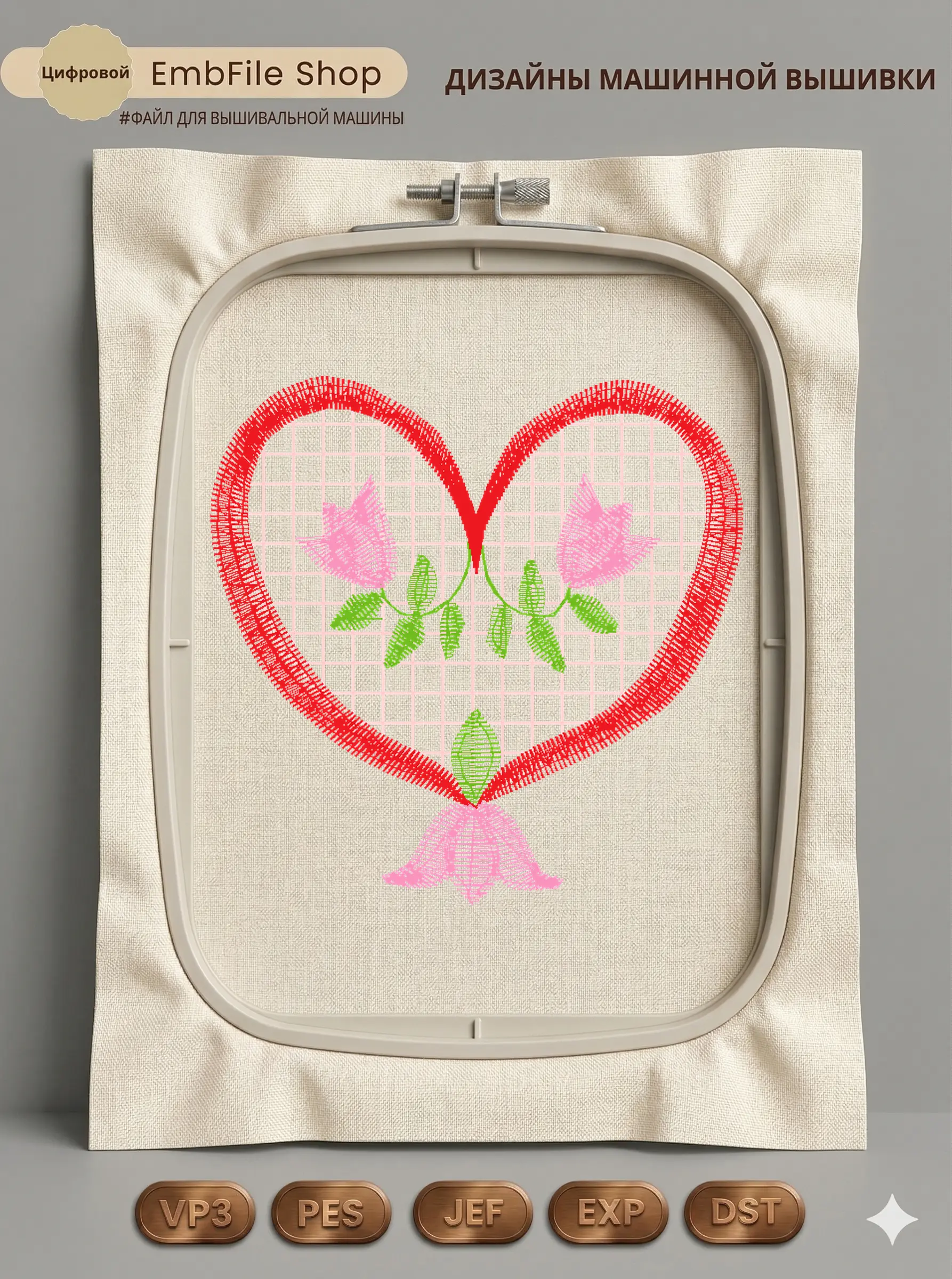 Дизайн машинной вышивки. Любовь (Размер 53×53мм). Форматы: DST PES JEF VP3 EXP XXX . Стежков: 4174