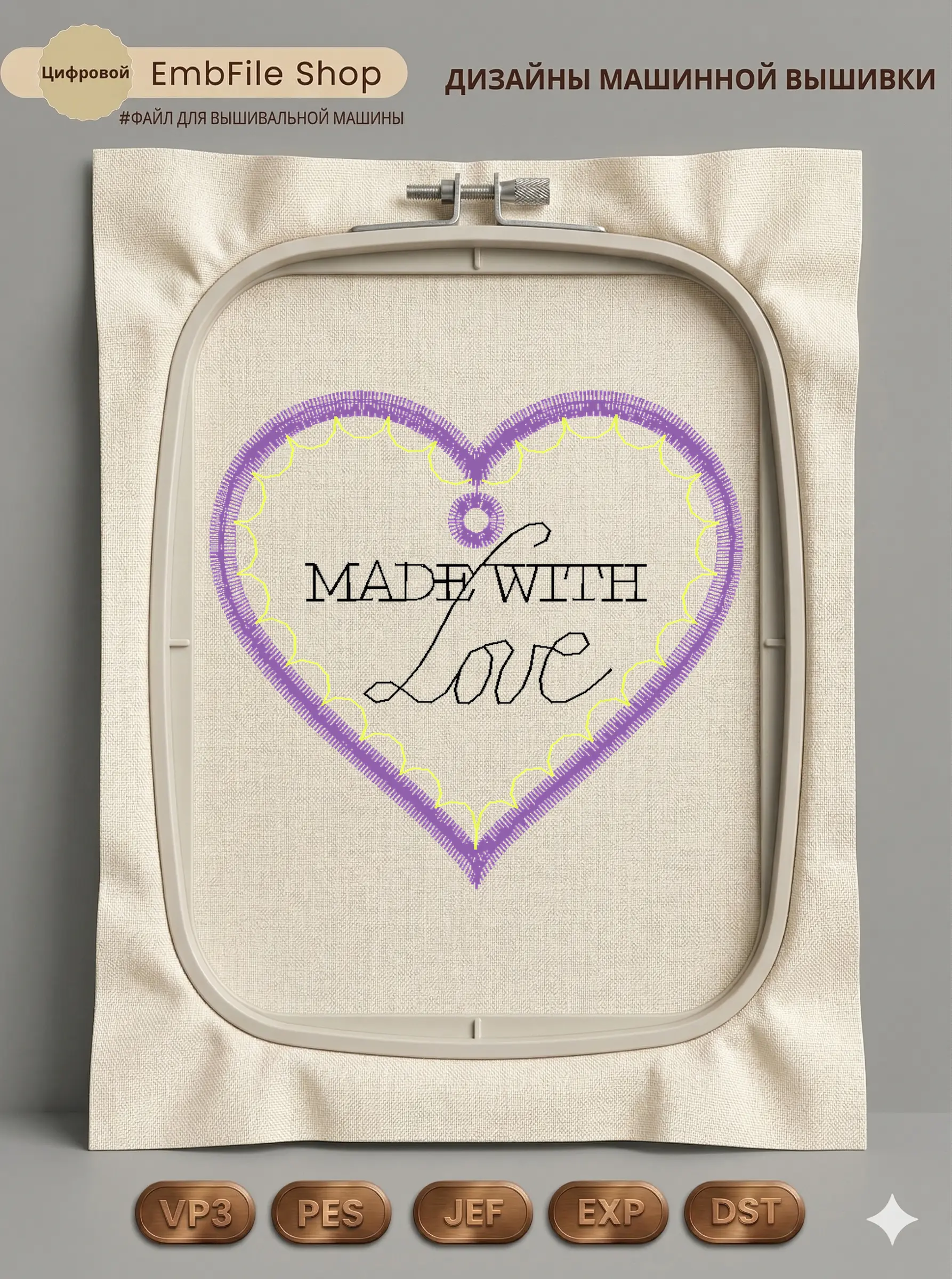 Дизайн машинной вышивки. Любовь (Размер 55×52мм). Форматы: DST PES JEF VP3 EXP XXX . Стежков: 2005