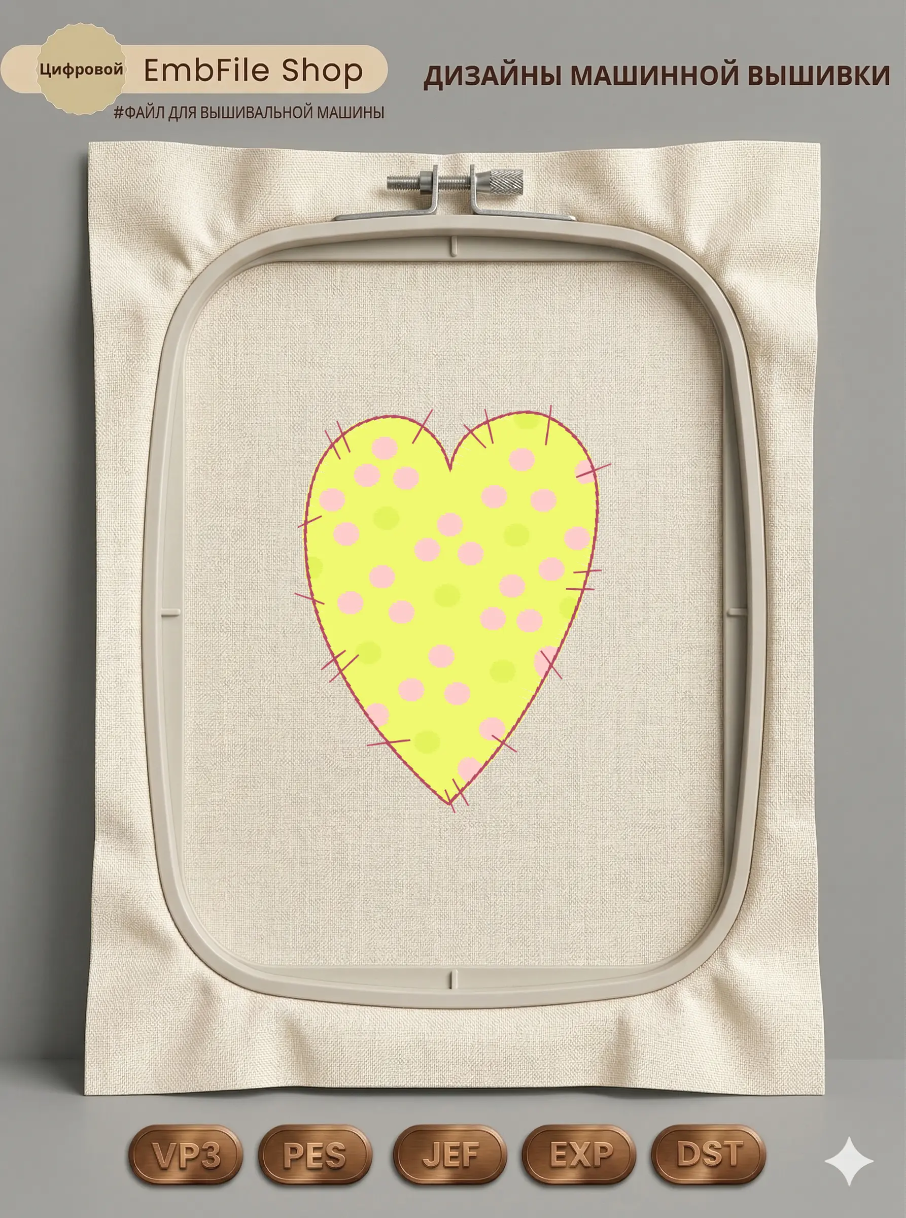 Это цифровой файл для вышивальной машины, а не физический товар (нашивка). Для работы с файлом вам необходимо иметь вышивальную машину и способ передачи файла на устройство (USB-флешка и т.д.).