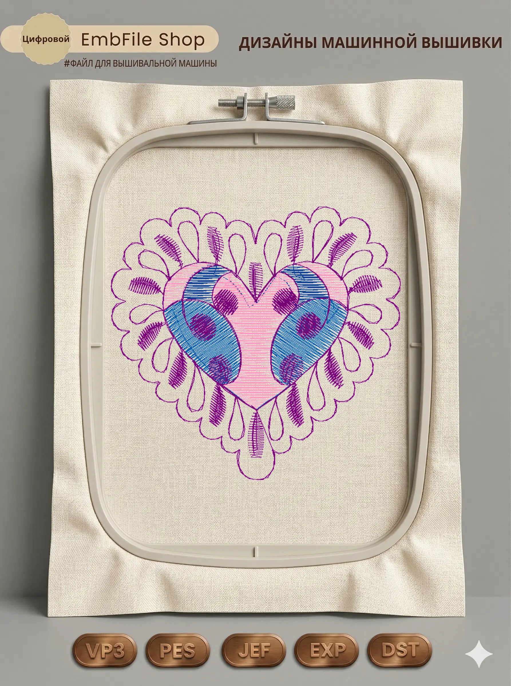Это цифровой файл для вышивальной машины, а не физический товар (нашивка). Для работы с файлом вам необходимо иметь вышивальную машину и способ передачи файла на устройство (USB-флешка и т.д.).