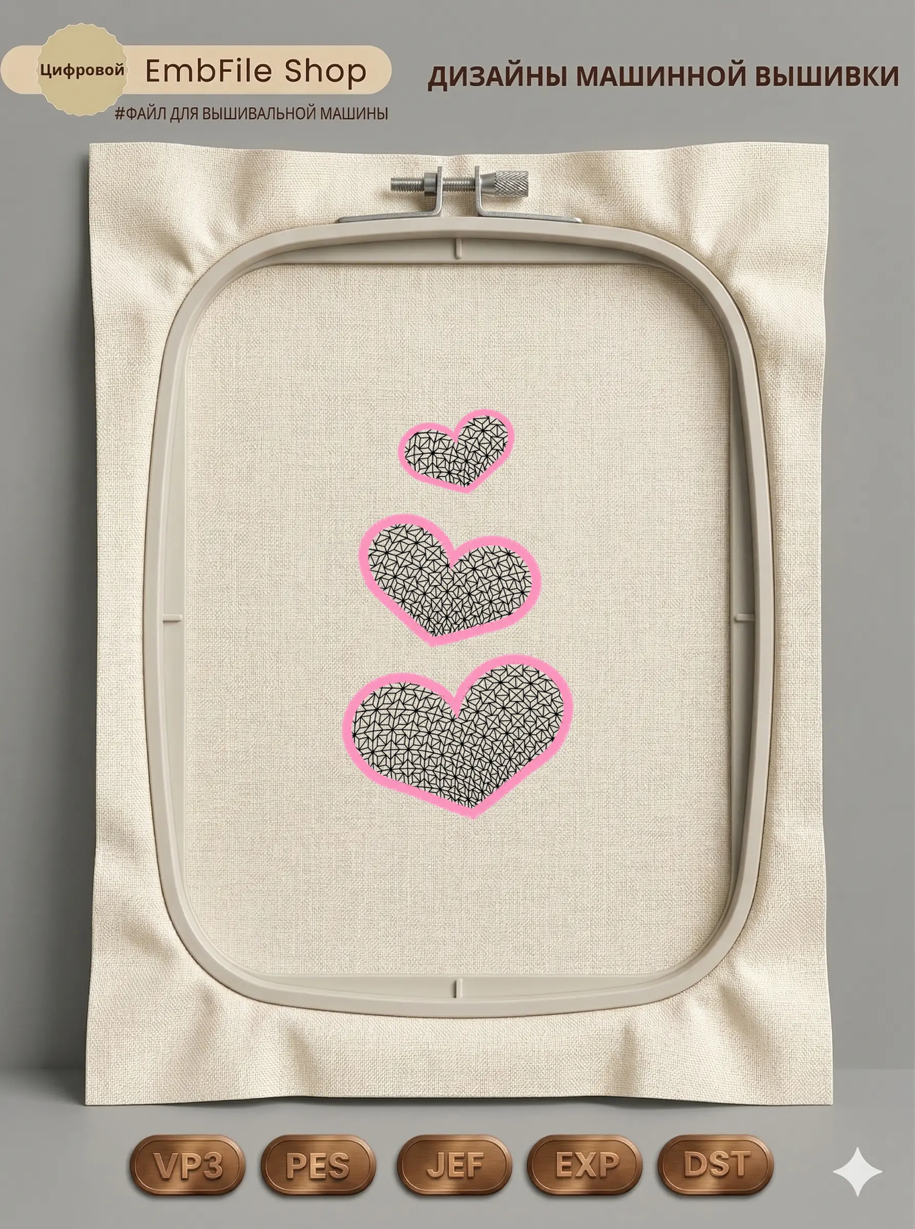 Дизайн машинной вышивки. Любовь (Размер 66×117мм). Форматы: DST PES JEF VP3 EXP XXX . Стежков: 7528