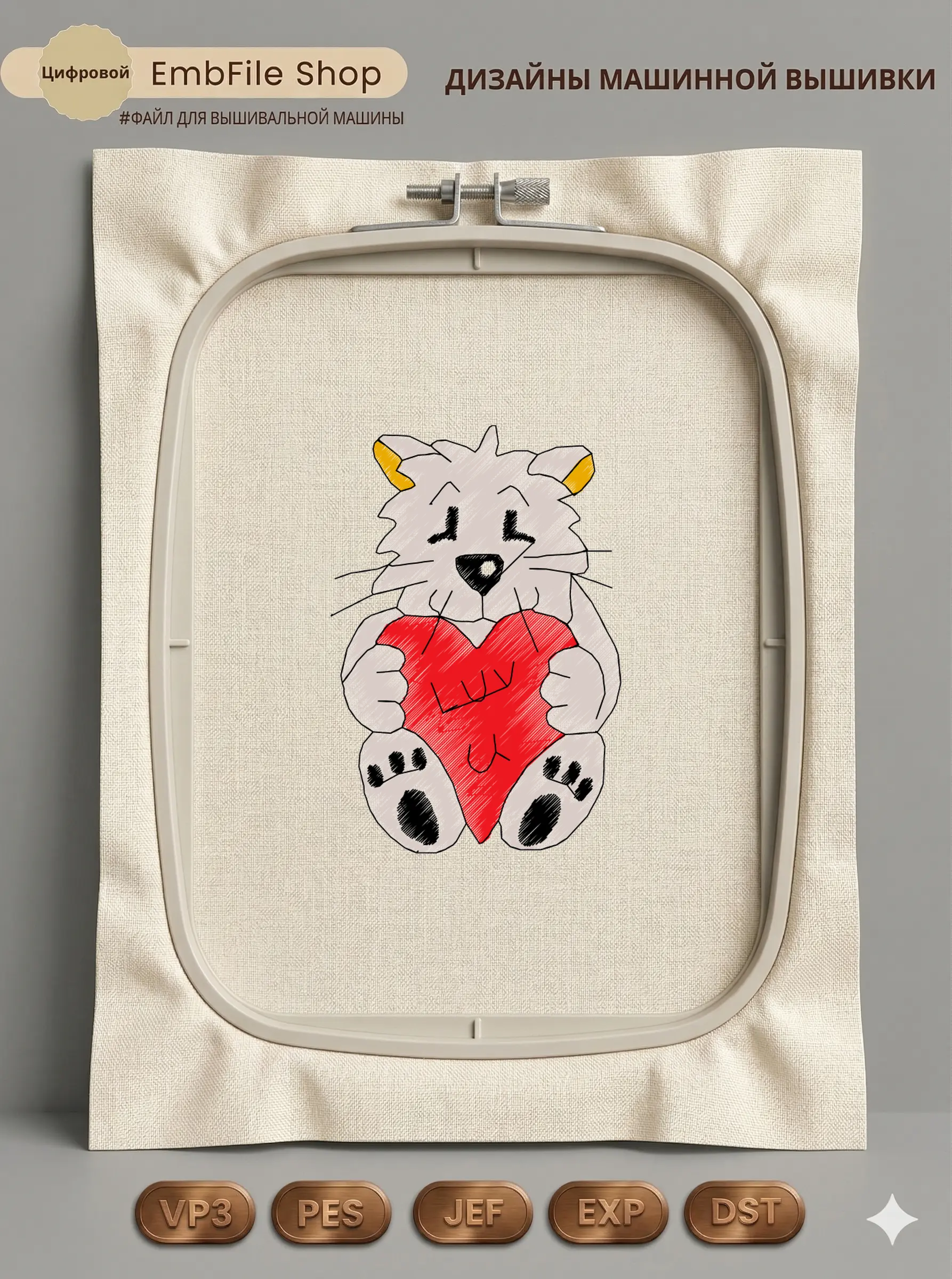 Это цифровой файл для вышивальной машины, а не физический товар (нашивка). Для работы с файлом вам необходимо иметь вышивальную машину и способ передачи файла на устройство (USB-флешка и т.д.).