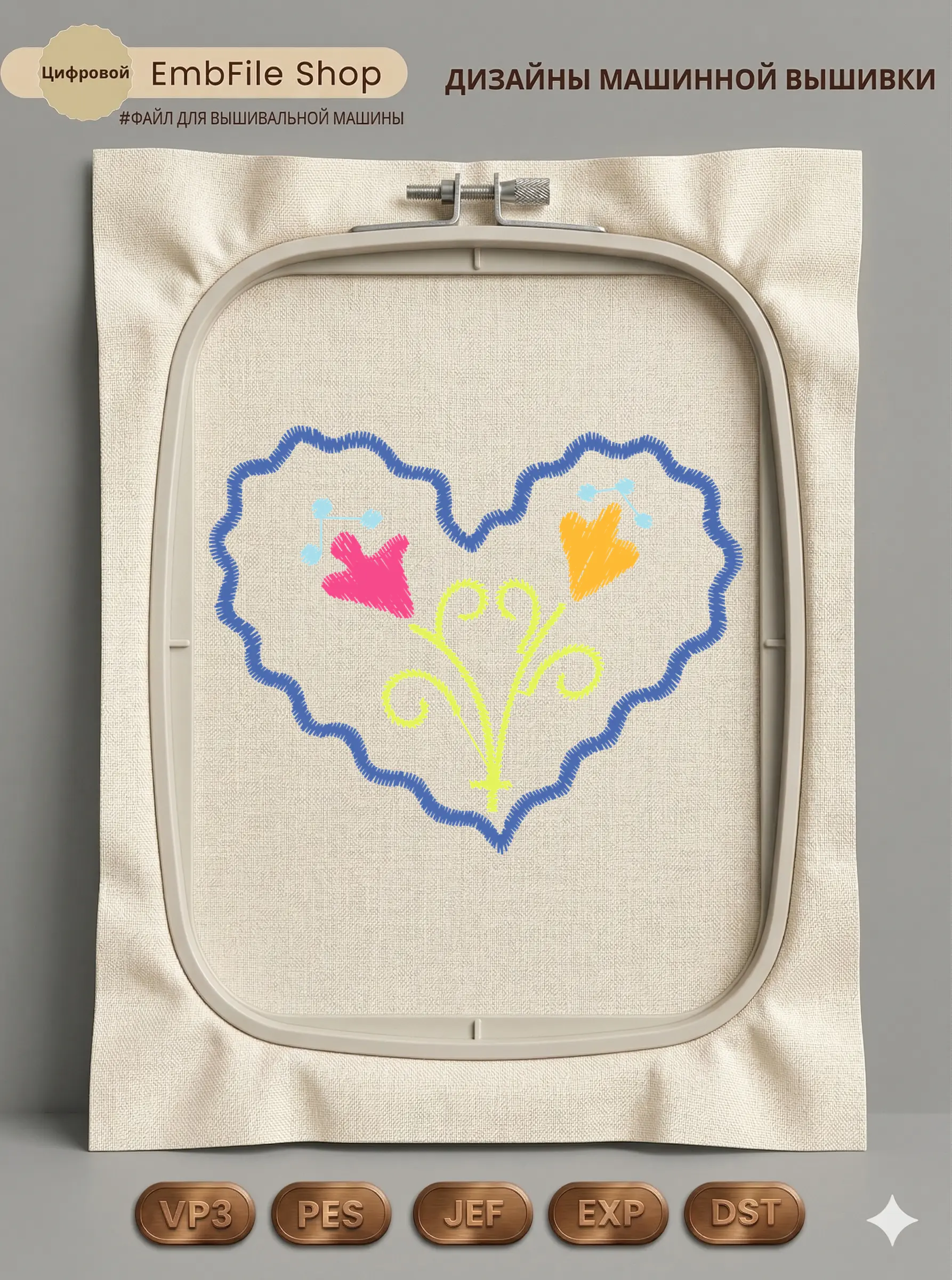 Это цифровой файл для вышивальной машины, а не физический товар (нашивка). Для работы с файлом вам необходимо иметь вышивальную машину и способ передачи файла на устройство (USB-флешка и т.д.).