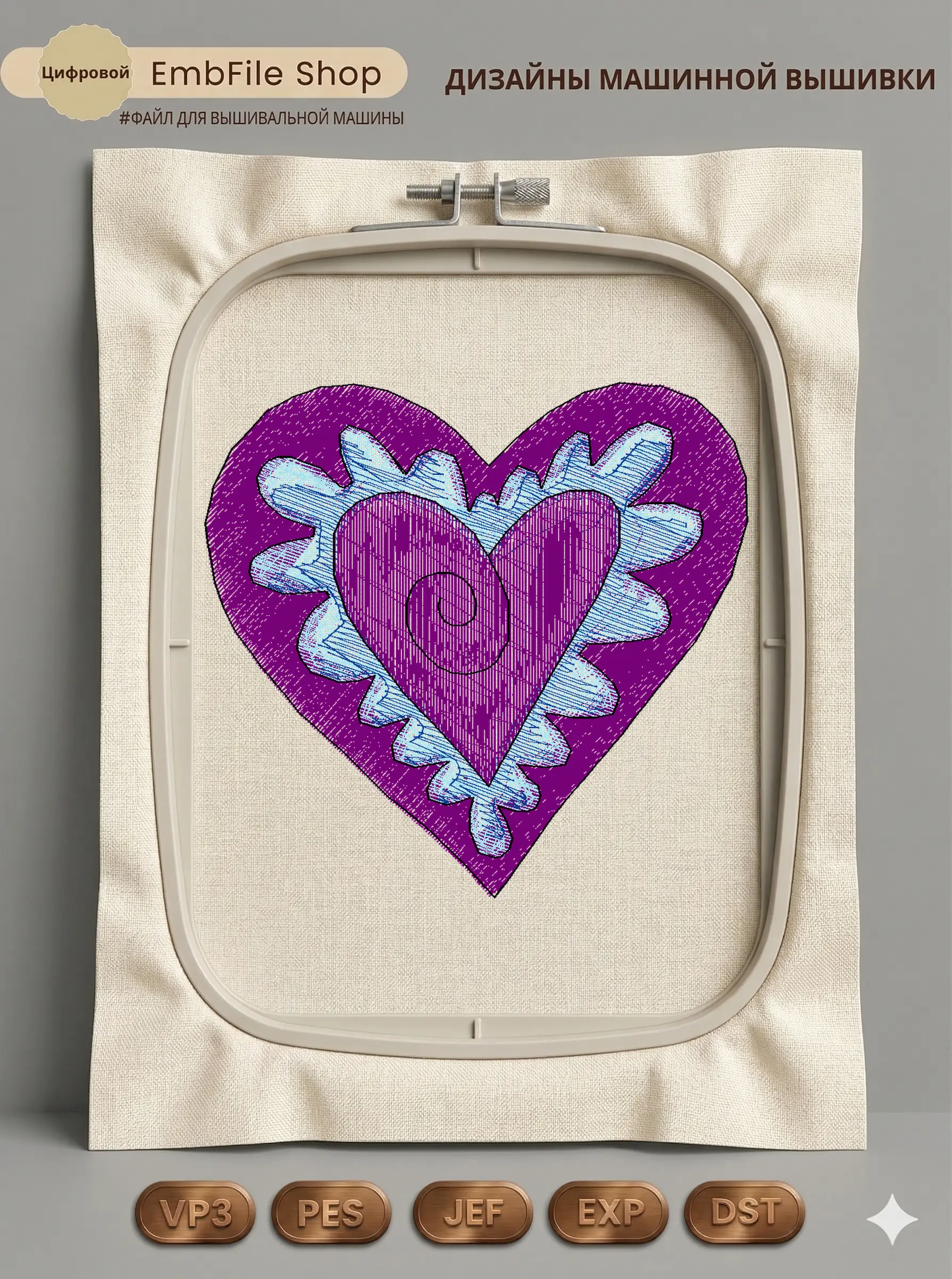 Это цифровой файл для вышивальной машины, а не физический товар (нашивка). Для работы с файлом вам необходимо иметь вышивальную машину и способ передачи файла на устройство (USB-флешка и т.д.).