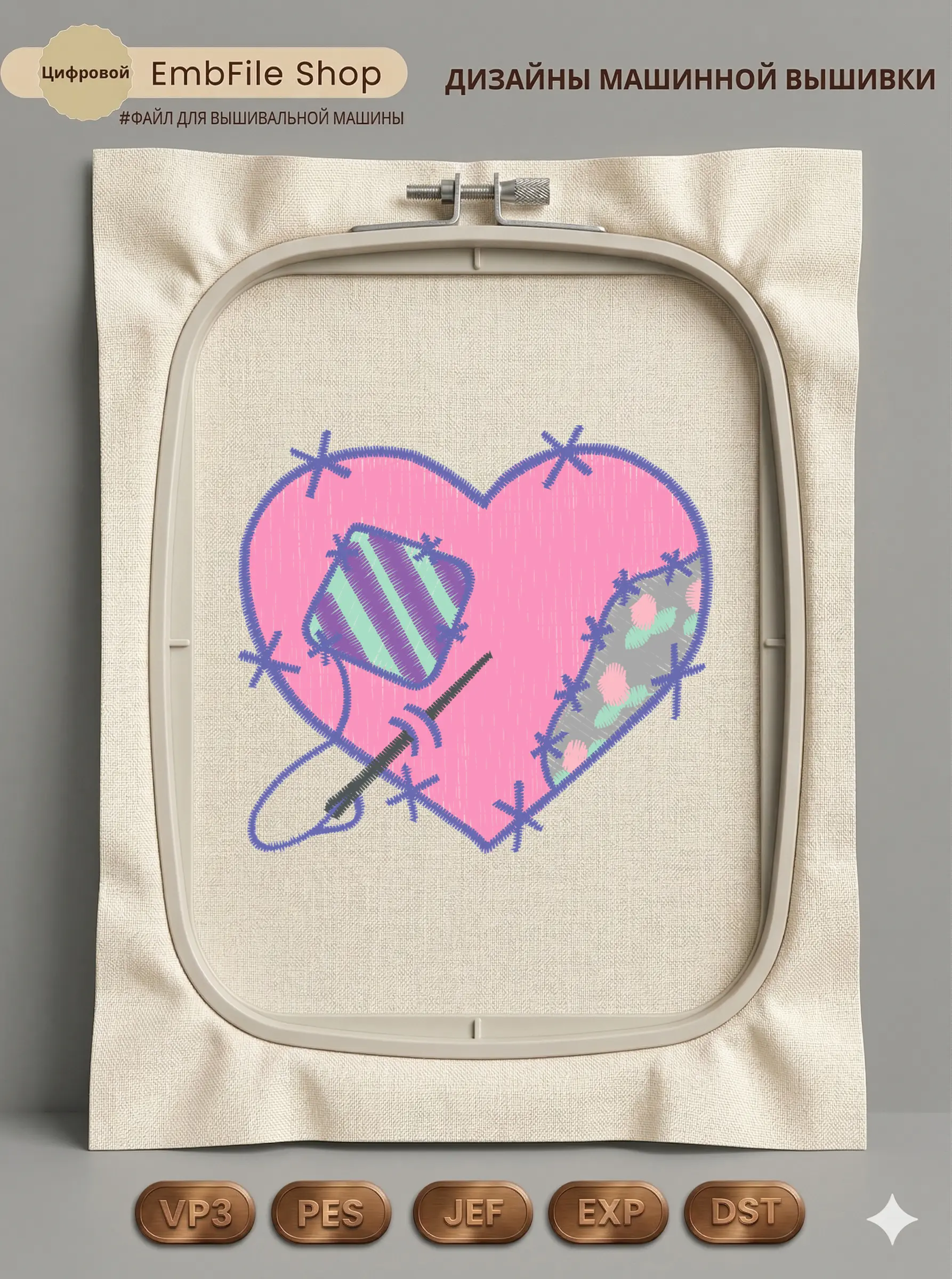 Это цифровой файл для вышивальной машины, а не физический товар (нашивка). Для работы с файлом вам необходимо иметь вышивальную машину и способ передачи файла на устройство (USB-флешка и т.д.).