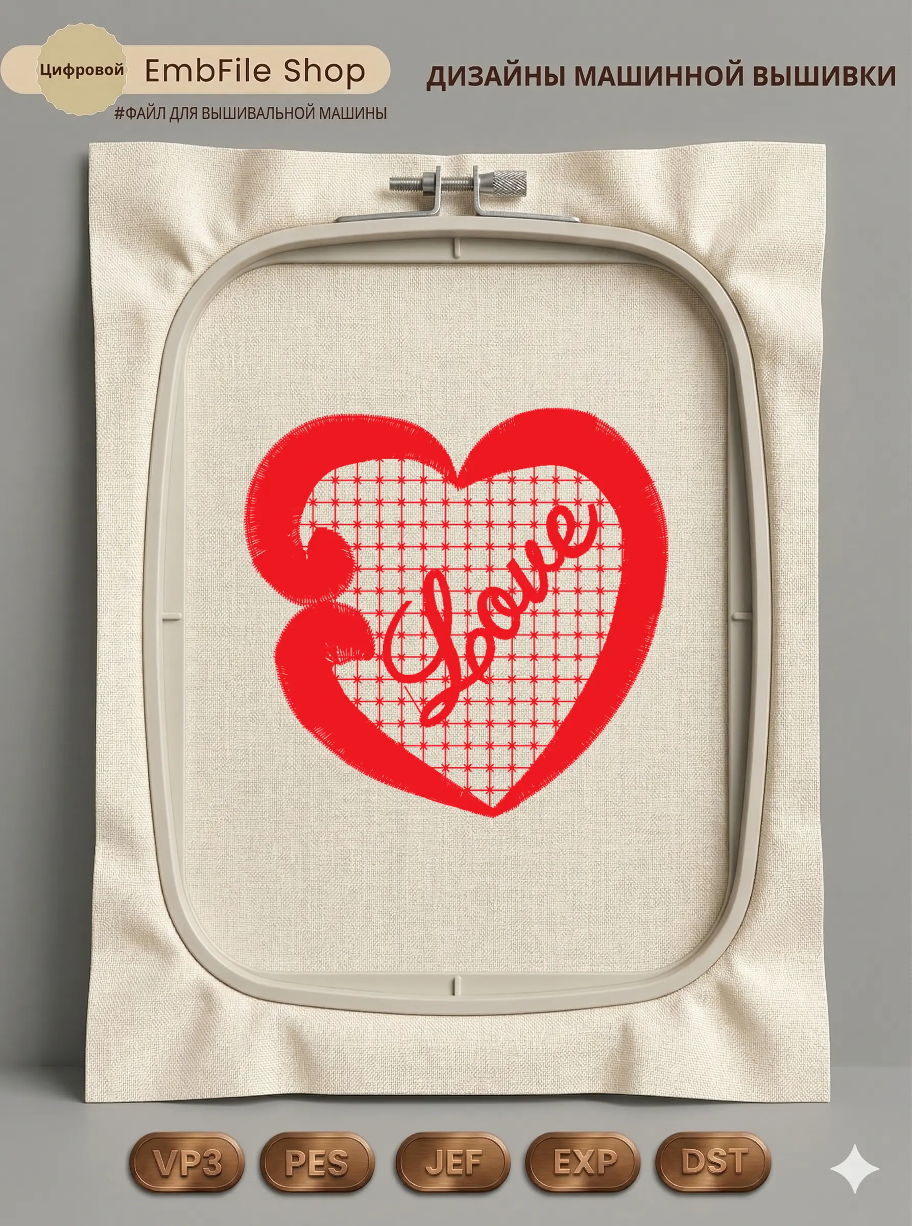 Дизайн машинной вышивки. Любовь (Размер 77×74мм). Форматы: DST PES JEF VP3 EXP XXX . Стежков: 9335