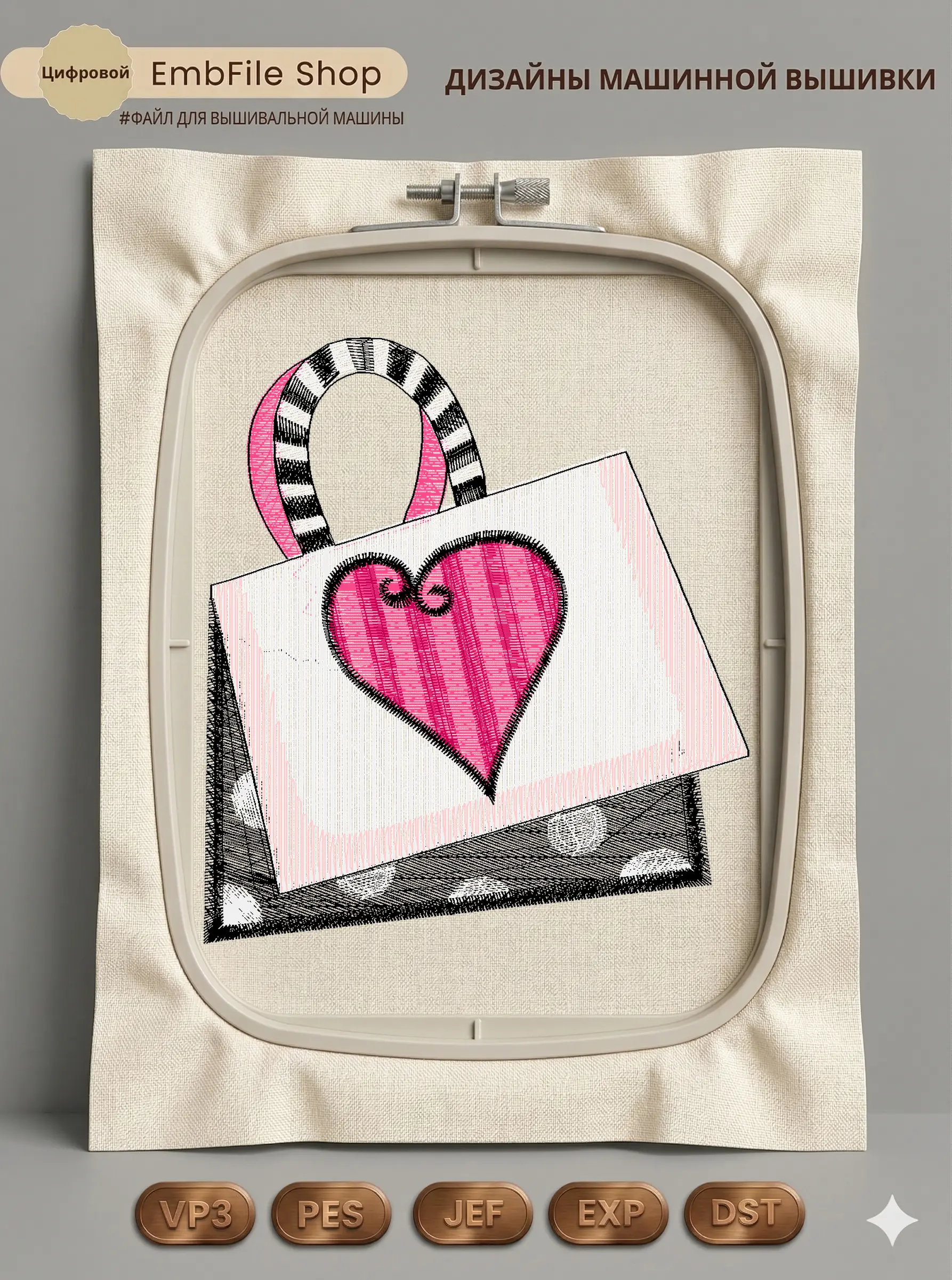 Это цифровой файл для вышивальной машины, а не физический товар (нашивка). Для работы с файлом вам необходимо иметь вышивальную машину и способ передачи файла на устройство (USB-флешка и т.д.).