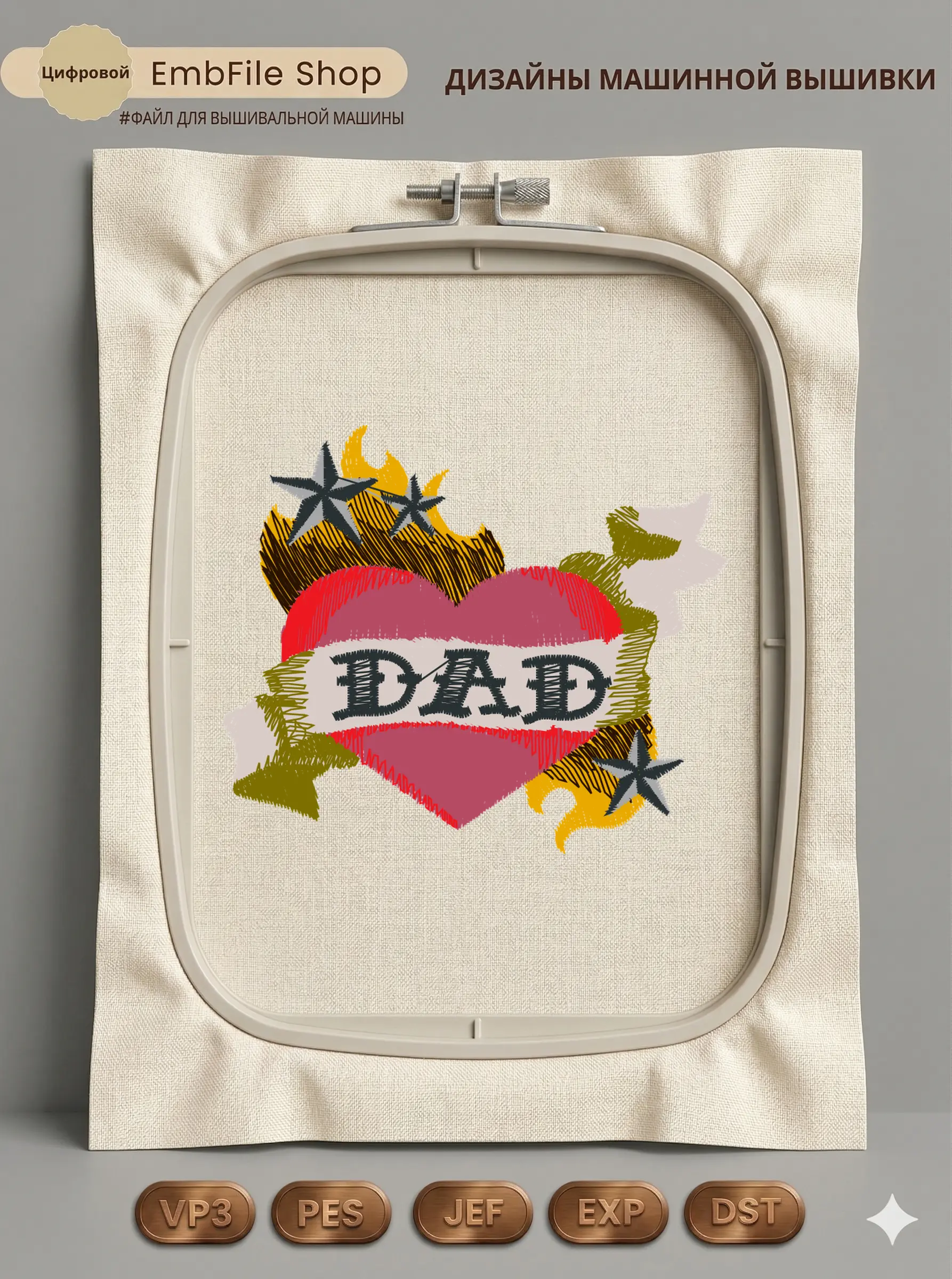Это цифровой файл для вышивальной машины, а не физический товар (нашивка). Для работы с файлом вам необходимо иметь вышивальную машину и способ передачи файла на устройство (USB-флешка и т.д.).