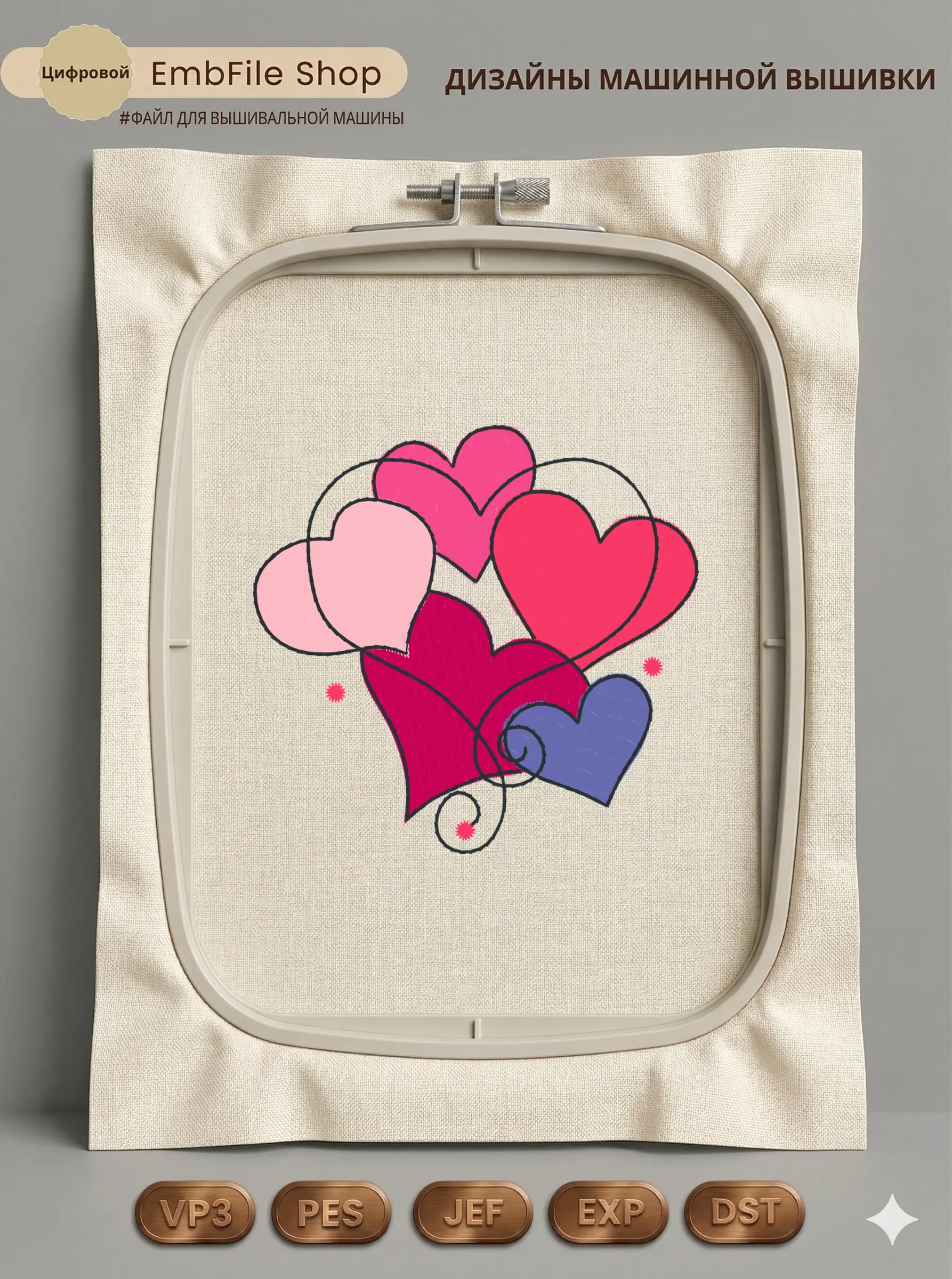 Дизайн машинной вышивки. Любовь (Размер 90×86мм). Форматы: DST PES JEF VP3 EXP XXX . Стежков: 9532