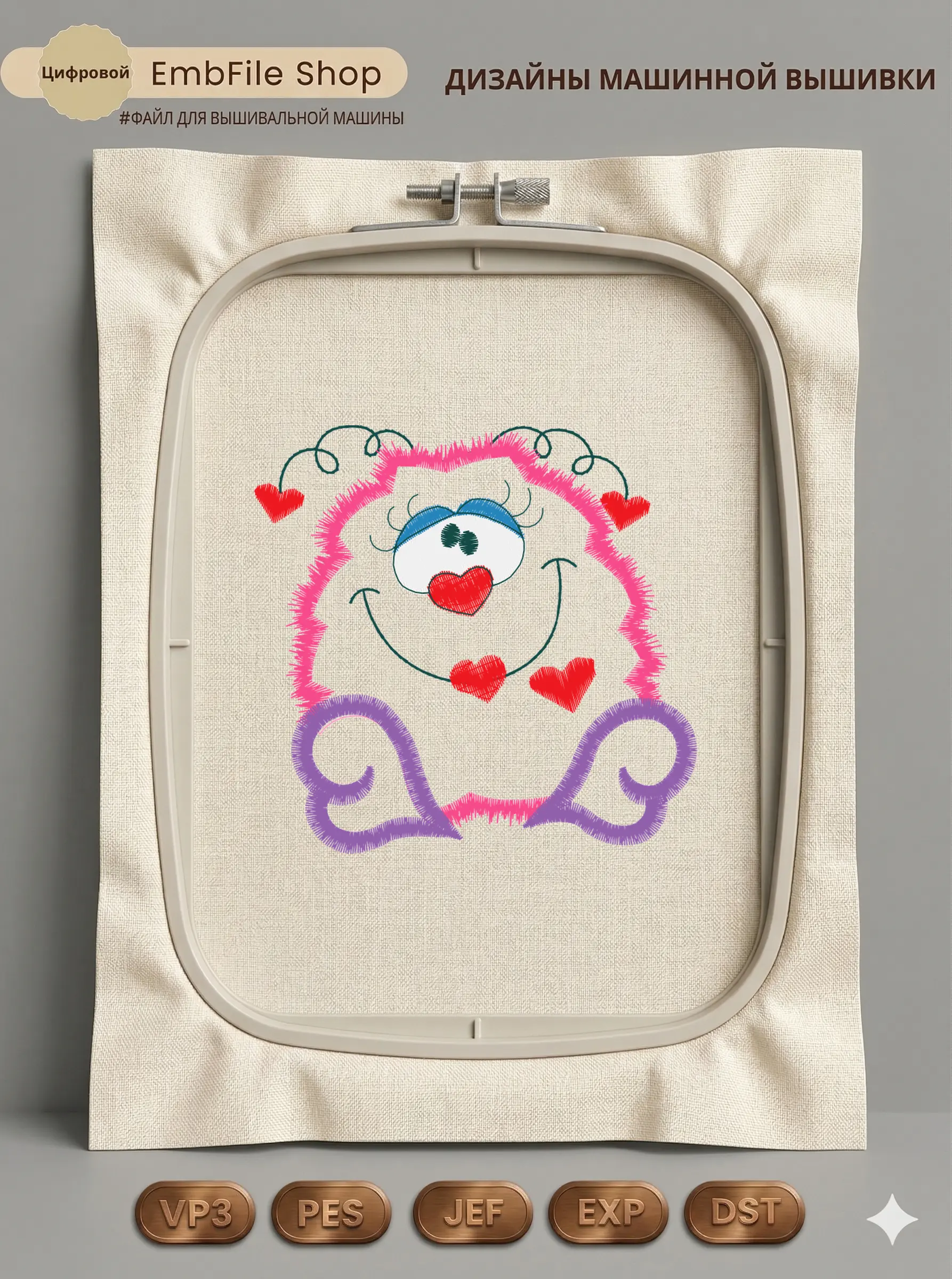 Это цифровой файл для вышивальной машины, а не физический товар (нашивка). Для работы с файлом вам необходимо иметь вышивальную машину и способ передачи файла на устройство (USB-флешка и т.д.).
