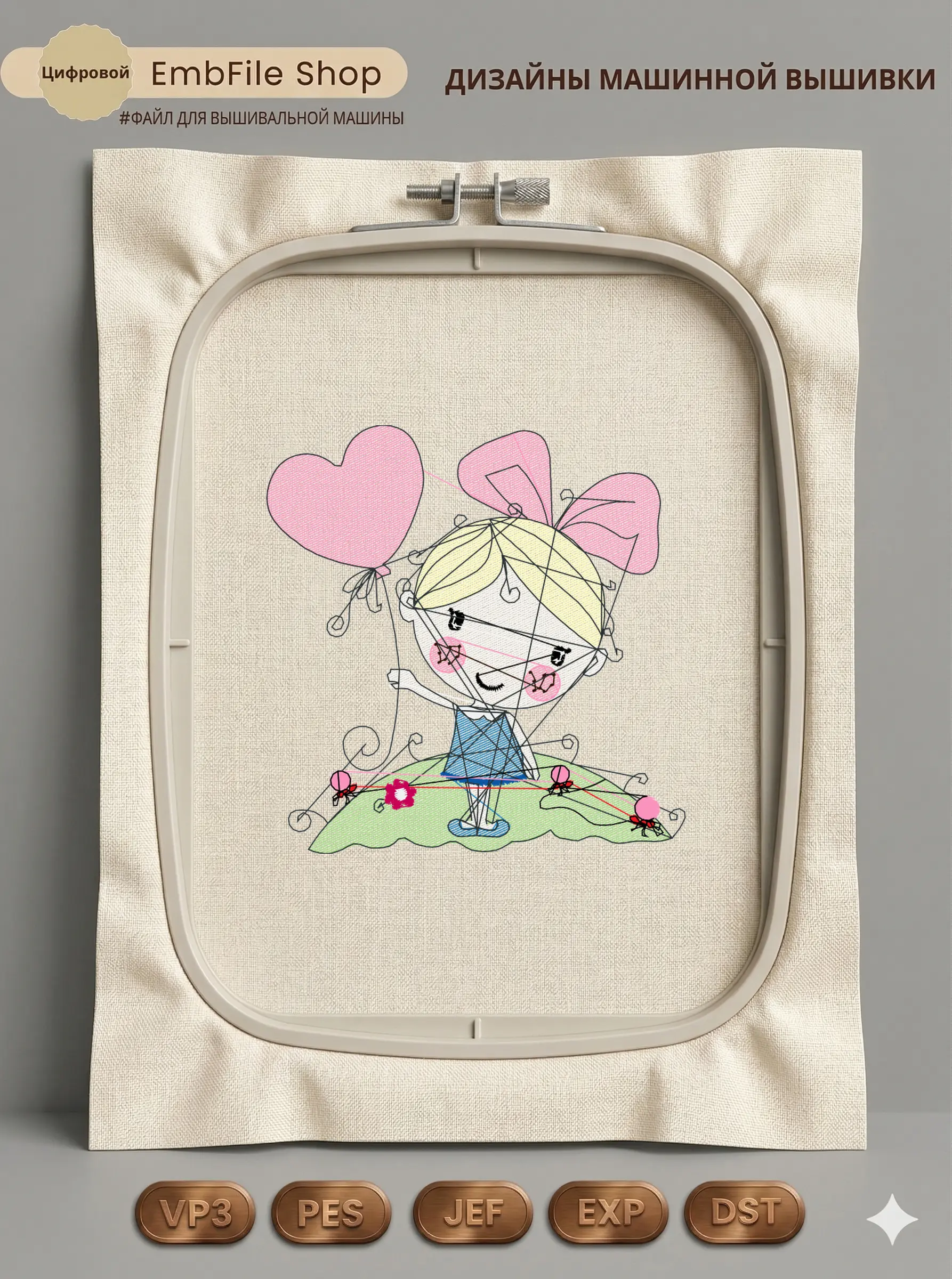 Это цифровой файл для вышивальной машины, а не физический товар (нашивка). Для работы с файлом вам необходимо иметь вышивальную машину и способ передачи файла на устройство (USB-флешка и т.д.).