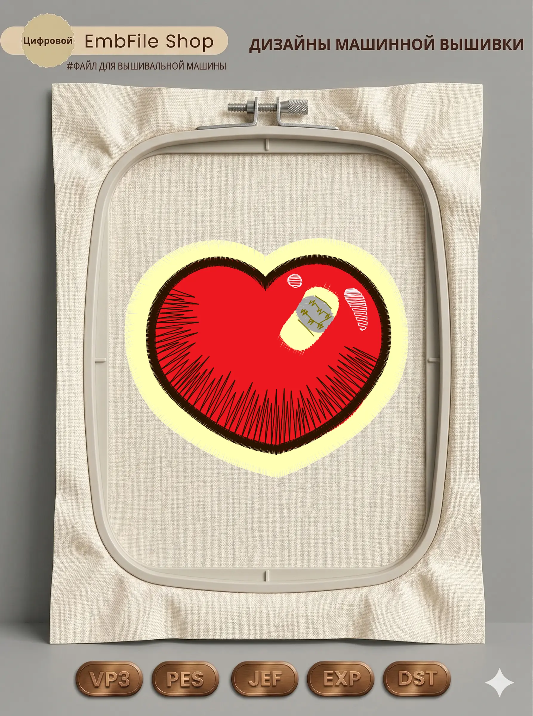 Это цифровой файл для вышивальной машины, а не физический товар (нашивка). Для работы с файлом вам необходимо иметь вышивальную машину и способ передачи файла на устройство (USB-флешка и т.д.).