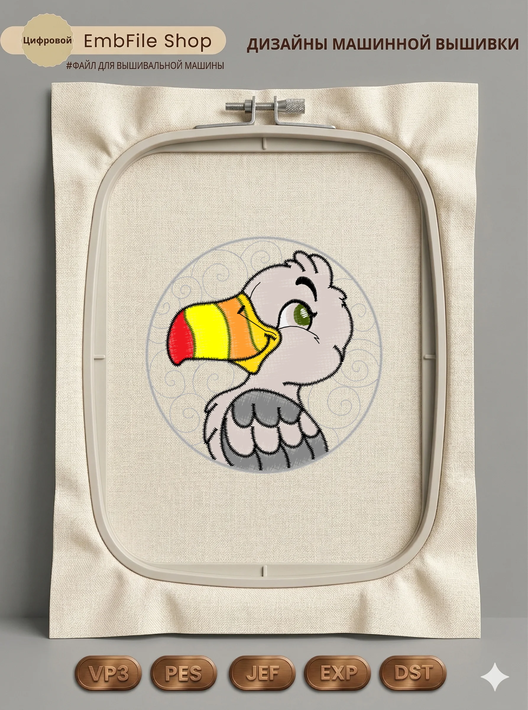 Это цифровой файл для вышивальной машины, а не физический товар (нашивка). Для работы с файлом вам необходимо иметь вышивальную машину и способ передачи файла на устройство (USB-флешка и т.д.).