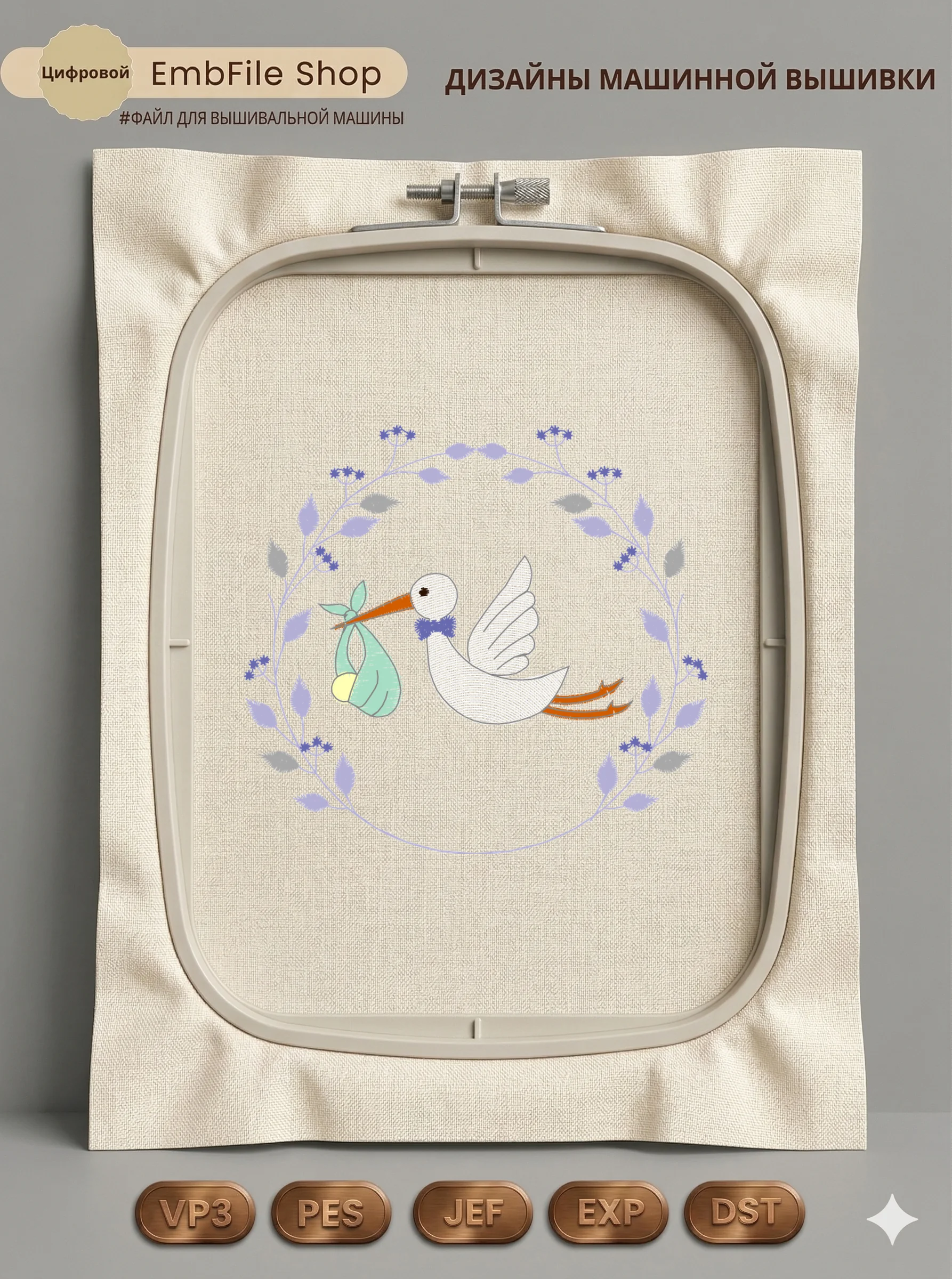 Это цифровой файл для вышивальной машины, а не физический товар (нашивка). Для работы с файлом вам необходимо иметь вышивальную машину и способ передачи файла на устройство (USB-флешка и т.д.).