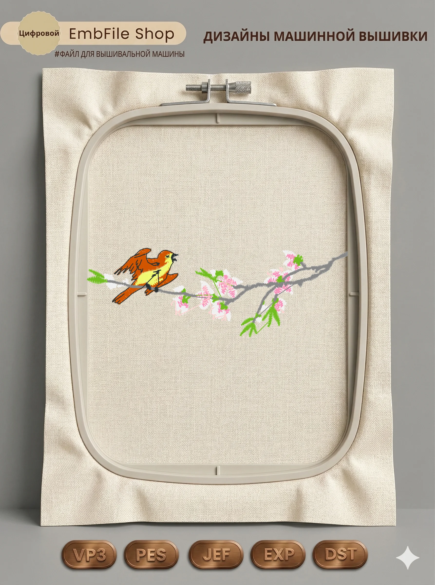 Это цифровой файл для вышивальной машины, а не физический товар (нашивка). Для работы с файлом вам необходимо иметь вышивальную машину и способ передачи файла на устройство (USB-флешка и т.д.).