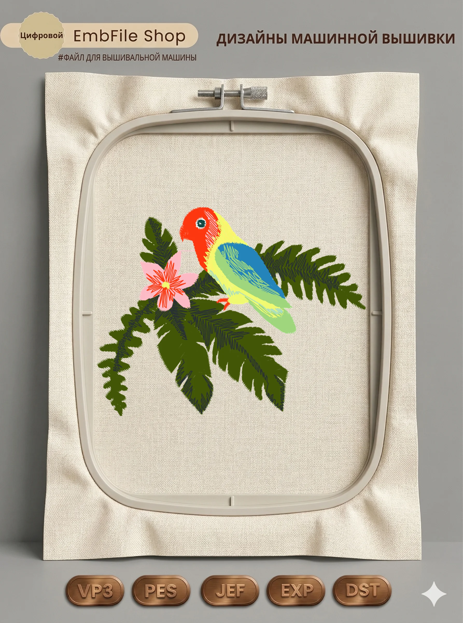 Это цифровой файл для вышивальной машины, а не физический товар (нашивка). Для работы с файлом вам необходимо иметь вышивальную машину и способ передачи файла на устройство (USB-флешка и т.д.).