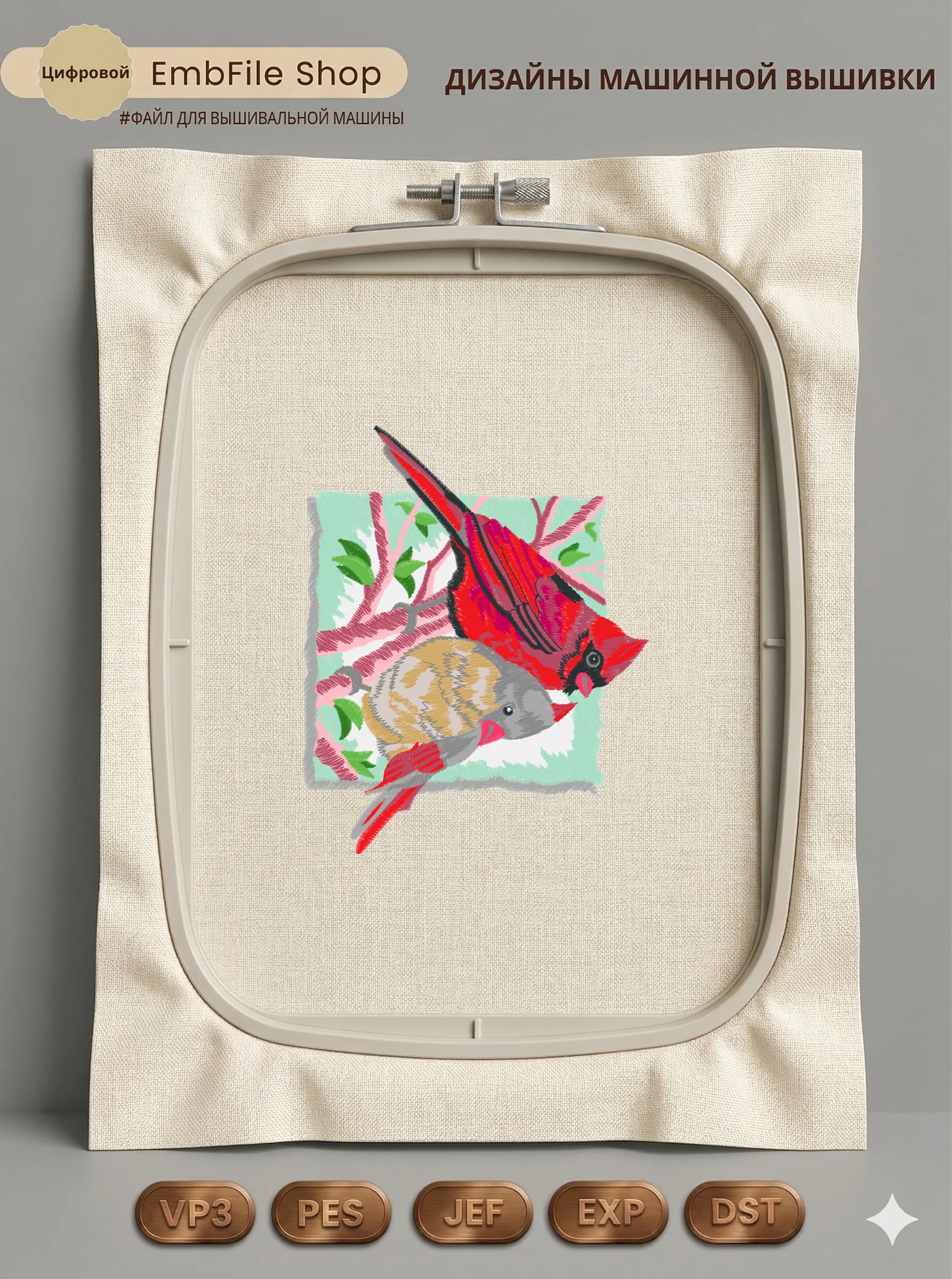 Дизайн машинной вышивки. Птицы (Размер 109×136мм). Форматы: DST PES JEF VP3 EXP XXX . Стежков: 30904