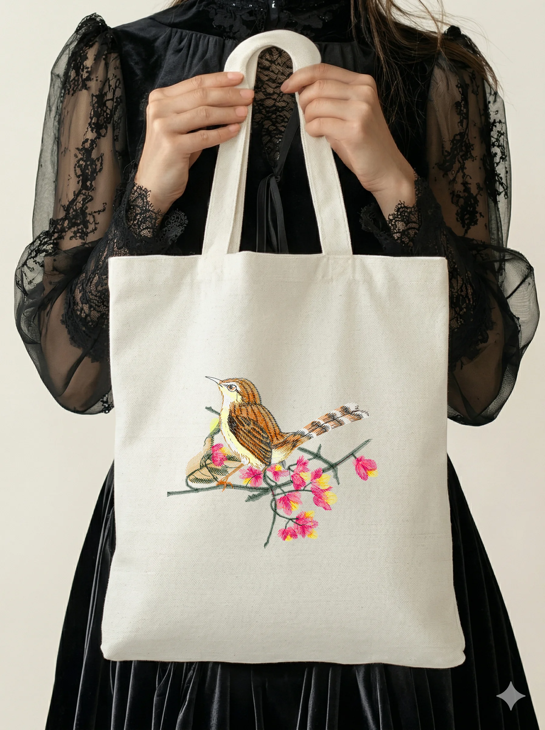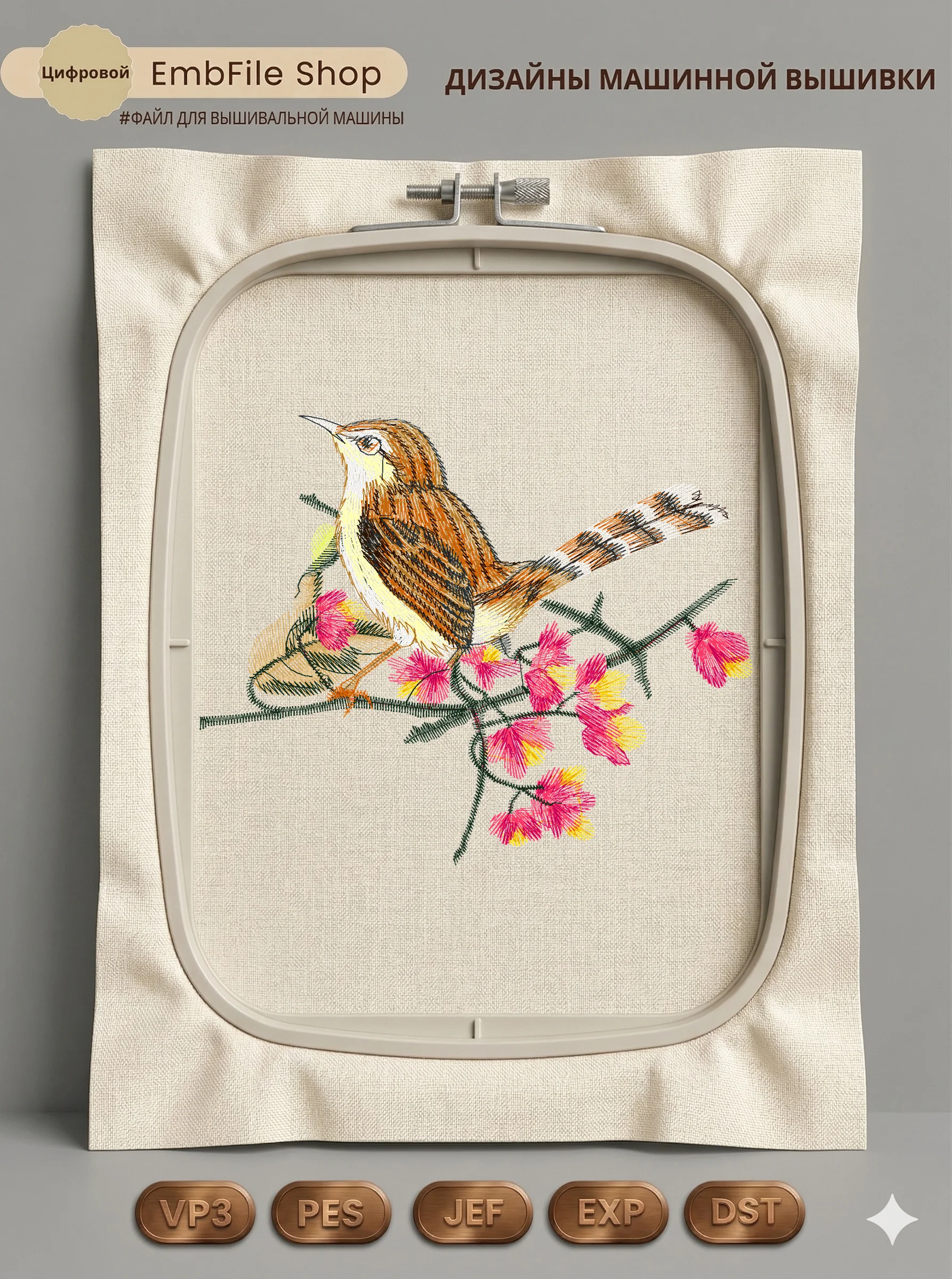 Дизайн протестирован на различных типах тканей, что гарантирует чистое и стабильное нанесение стежков.