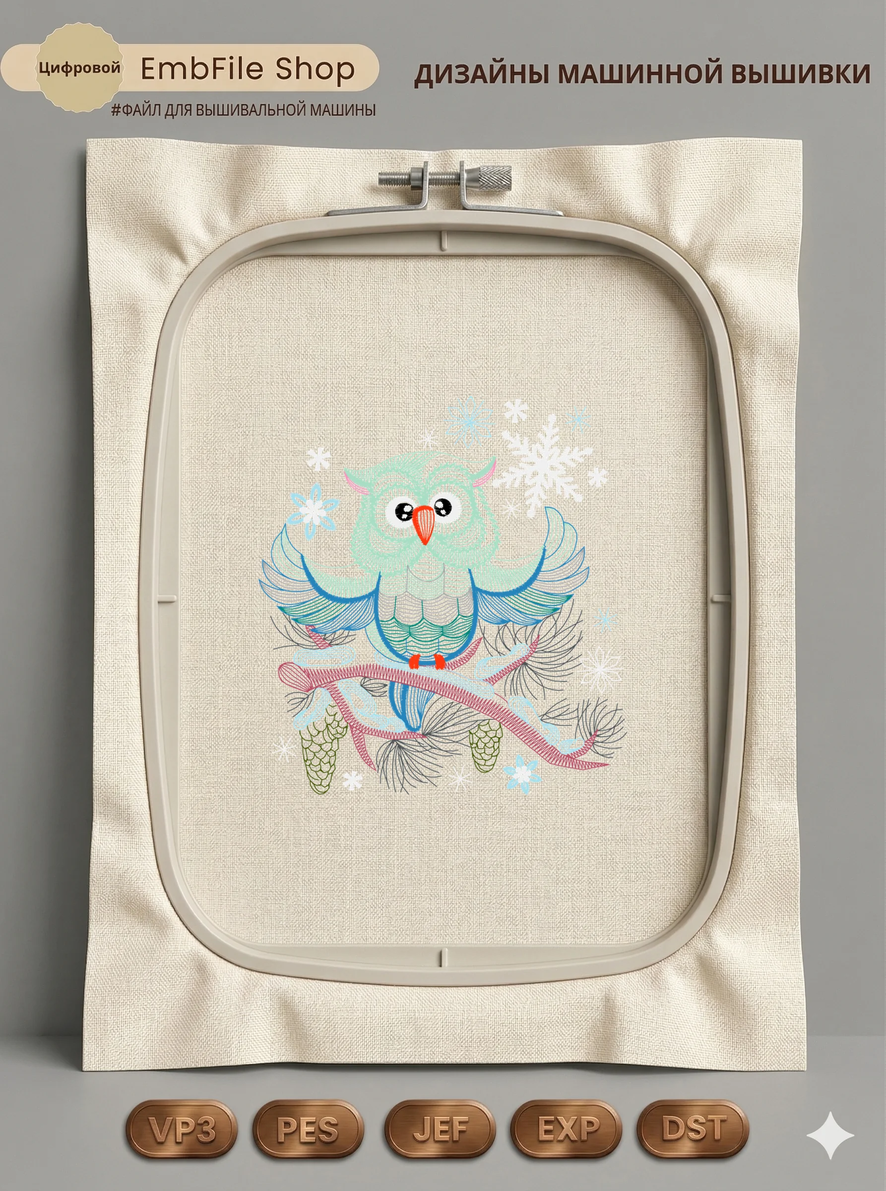 Это цифровой файл для вышивальной машины, а не физический товар (нашивка). Для работы с файлом вам необходимо иметь вышивальную машину и способ передачи файла на устройство (USB-флешка и т.д.).