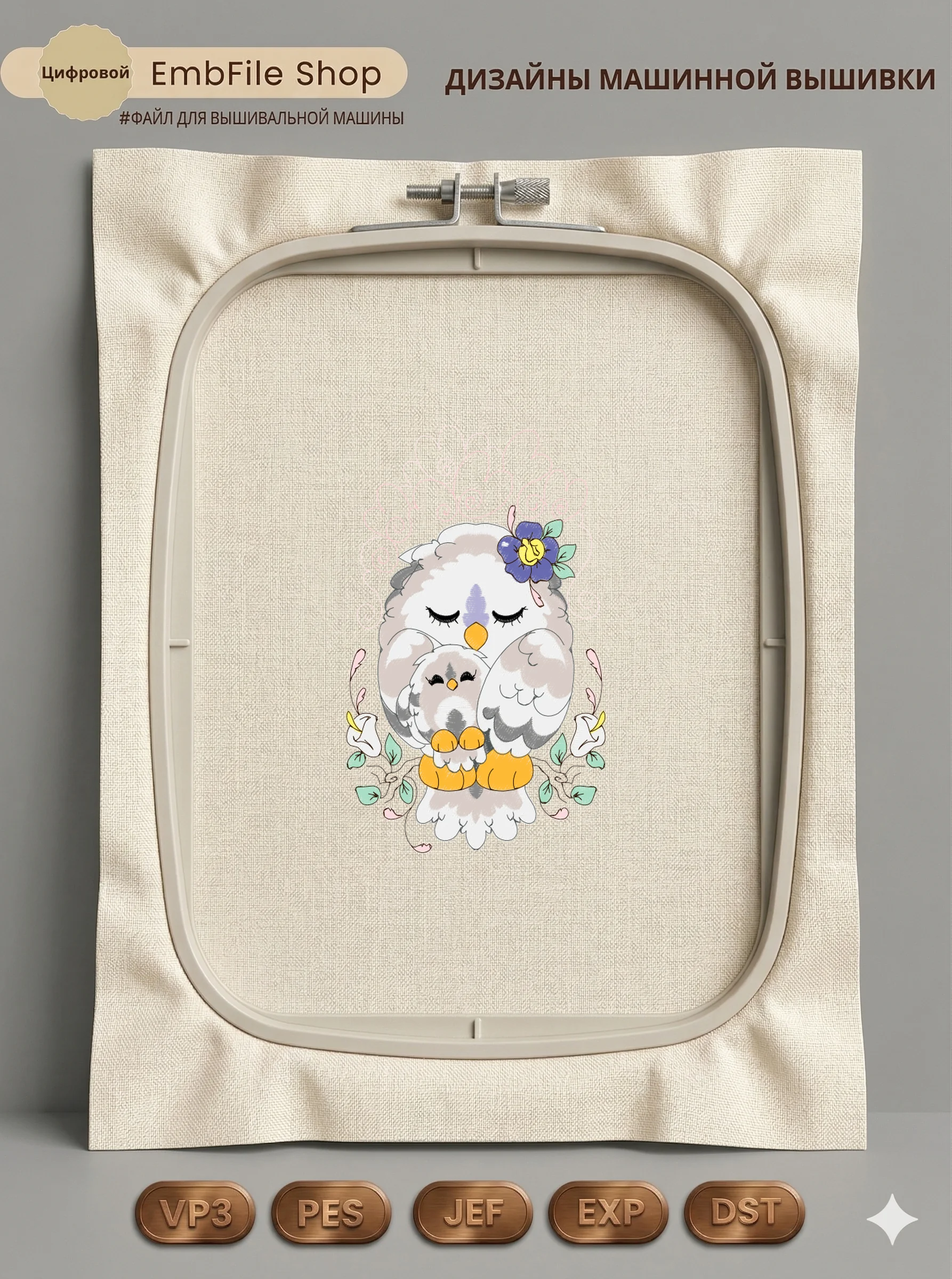 Это цифровой файл для вышивальной машины, а не физический товар (нашивка). Для работы с файлом вам необходимо иметь вышивальную машину и способ передачи файла на устройство (USB-флешка и т.д.).