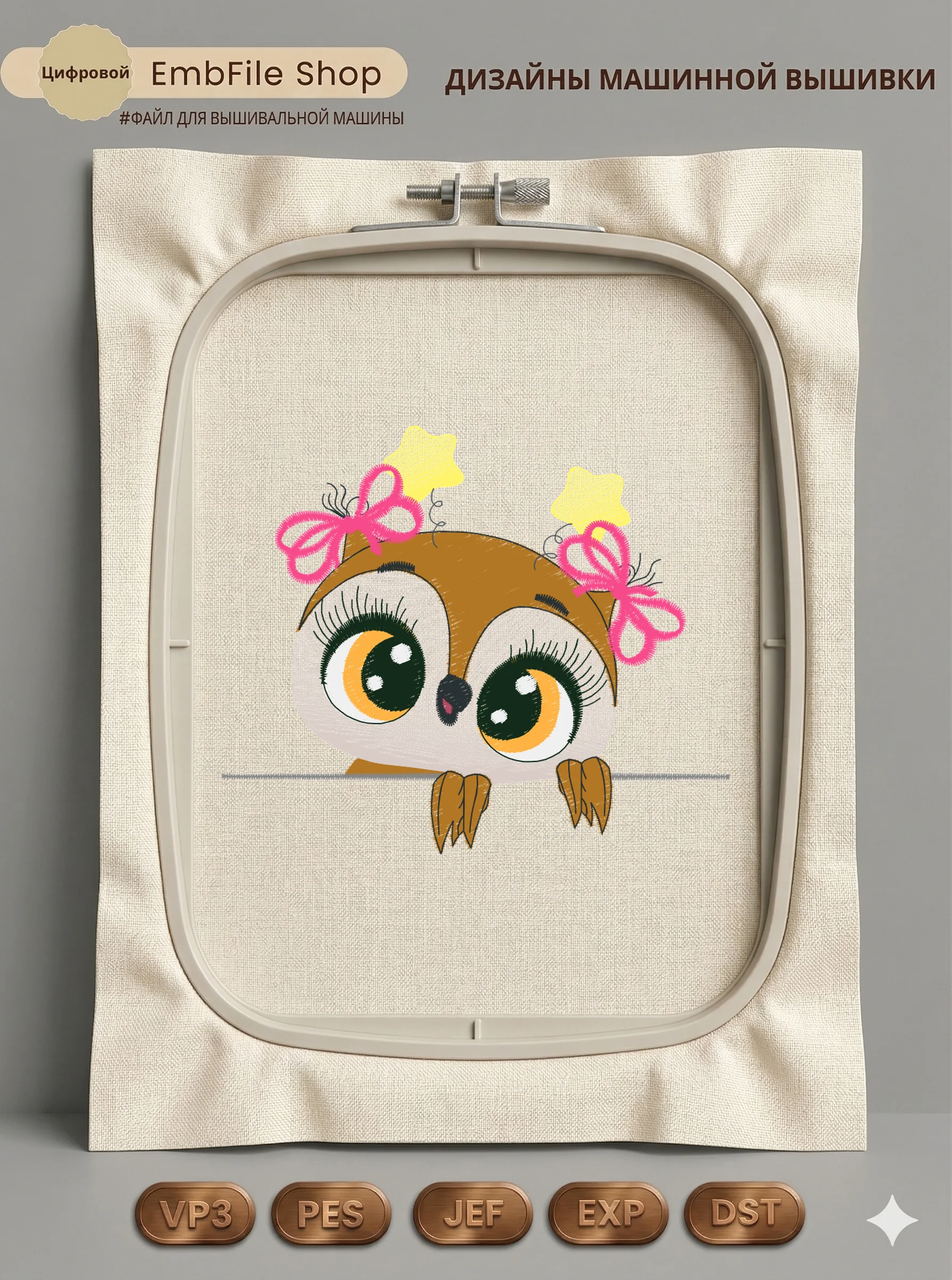 Это цифровой файл для вышивальной машины, а не физический товар (нашивка). Для работы с файлом вам необходимо иметь вышивальную машину и способ передачи файла на устройство (USB-флешка и т.д.).