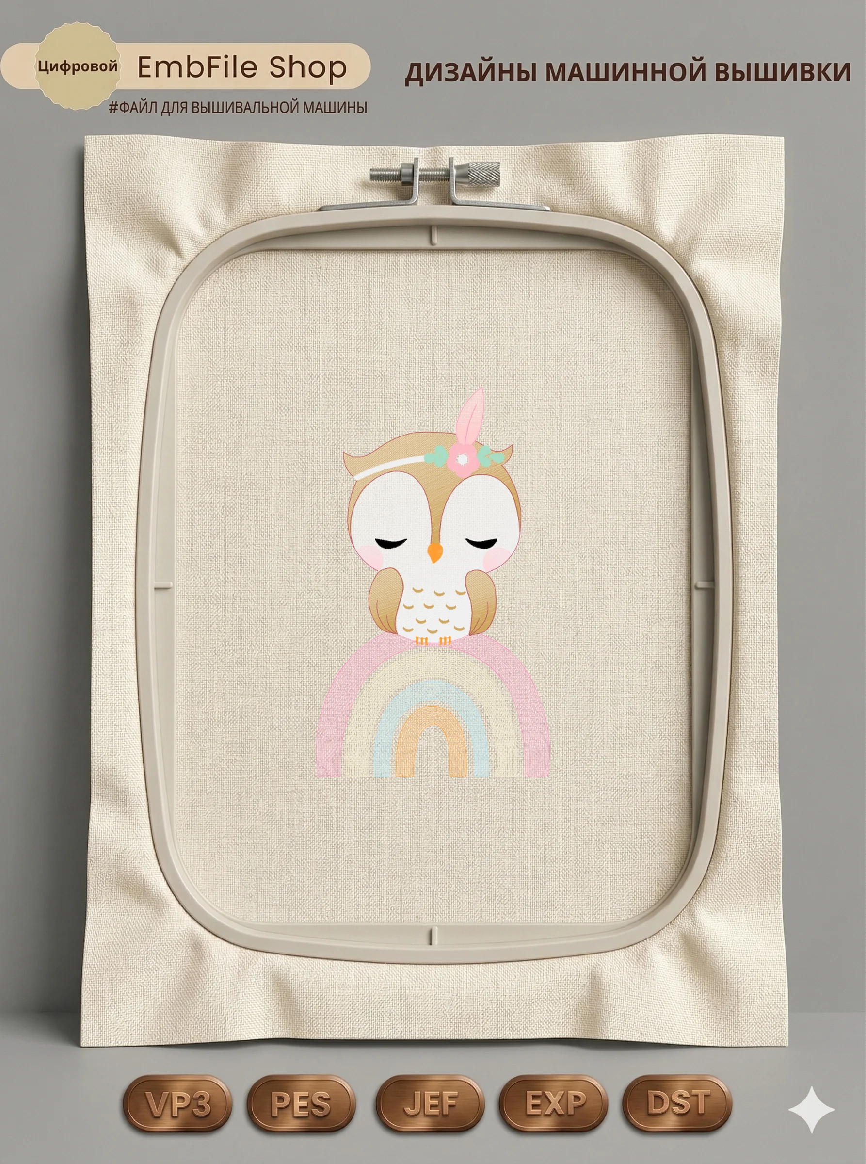 Это цифровой файл для вышивальной машины, а не физический товар (нашивка). Для работы с файлом вам необходимо иметь вышивальную машину и способ передачи файла на устройство (USB-флешка и т.д.).