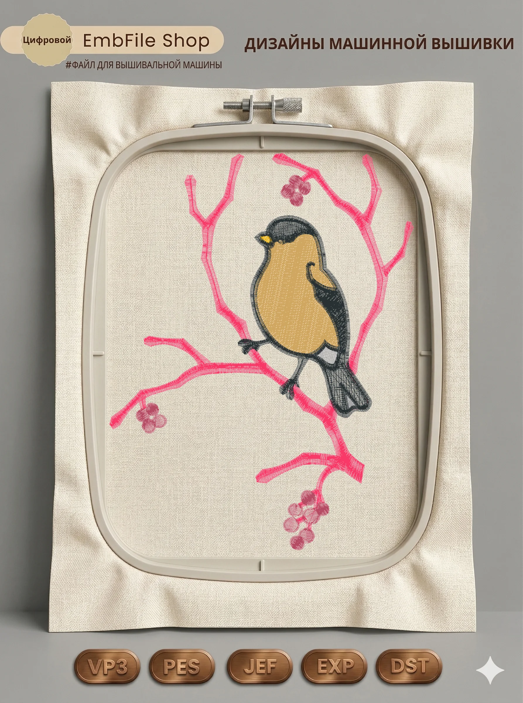 Это цифровой файл для вышивальной машины, а не физический товар (нашивка). Для работы с файлом вам необходимо иметь вышивальную машину и способ передачи файла на устройство (USB-флешка и т.д.).