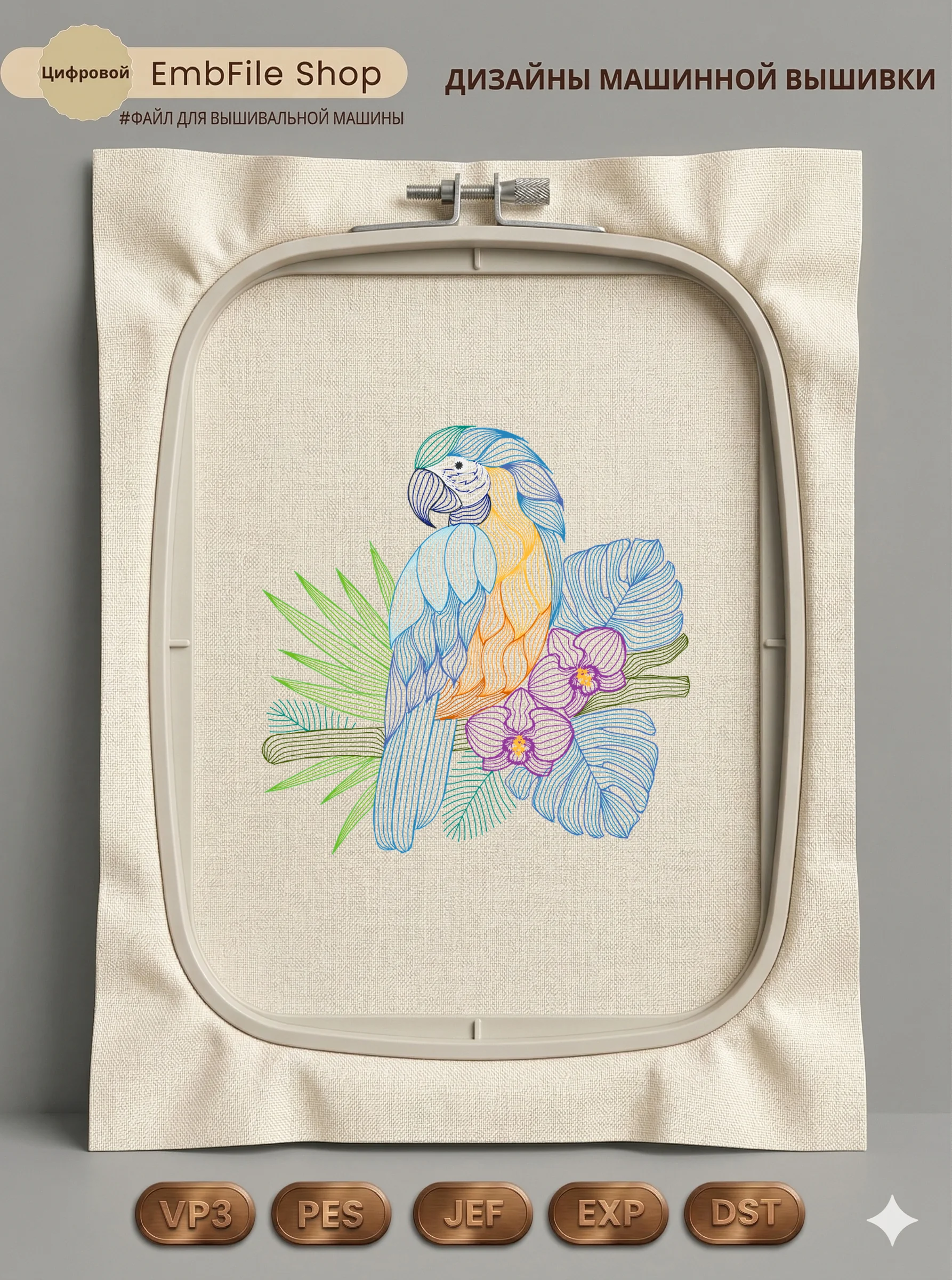 Дизайн протестирован на различных типах тканей, что гарантирует чистое и стабильное нанесение стежков.