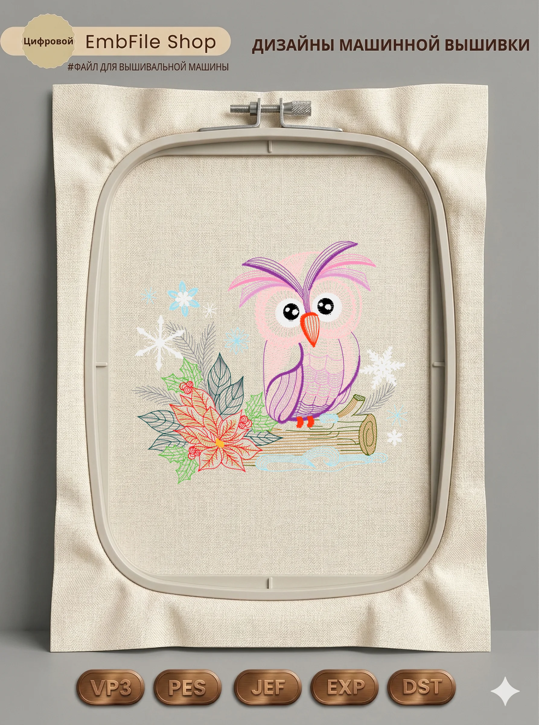 Это цифровой файл для вышивальной машины, а не физический товар (нашивка). Для работы с файлом вам необходимо иметь вышивальную машину и способ передачи файла на устройство (USB-флешка и т.д.).