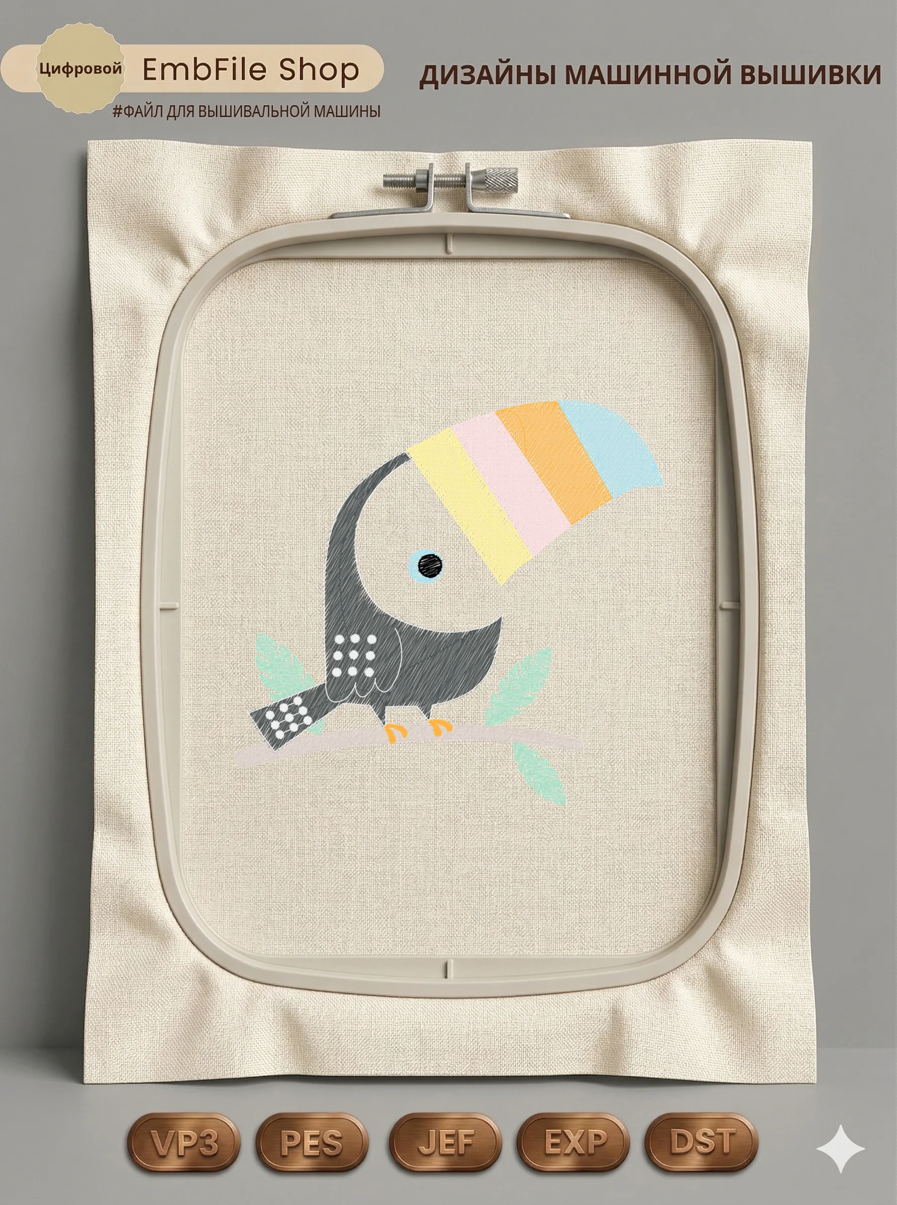 Дизайн протестирован на различных типах тканей, что гарантирует чистое и стабильное нанесение стежков.