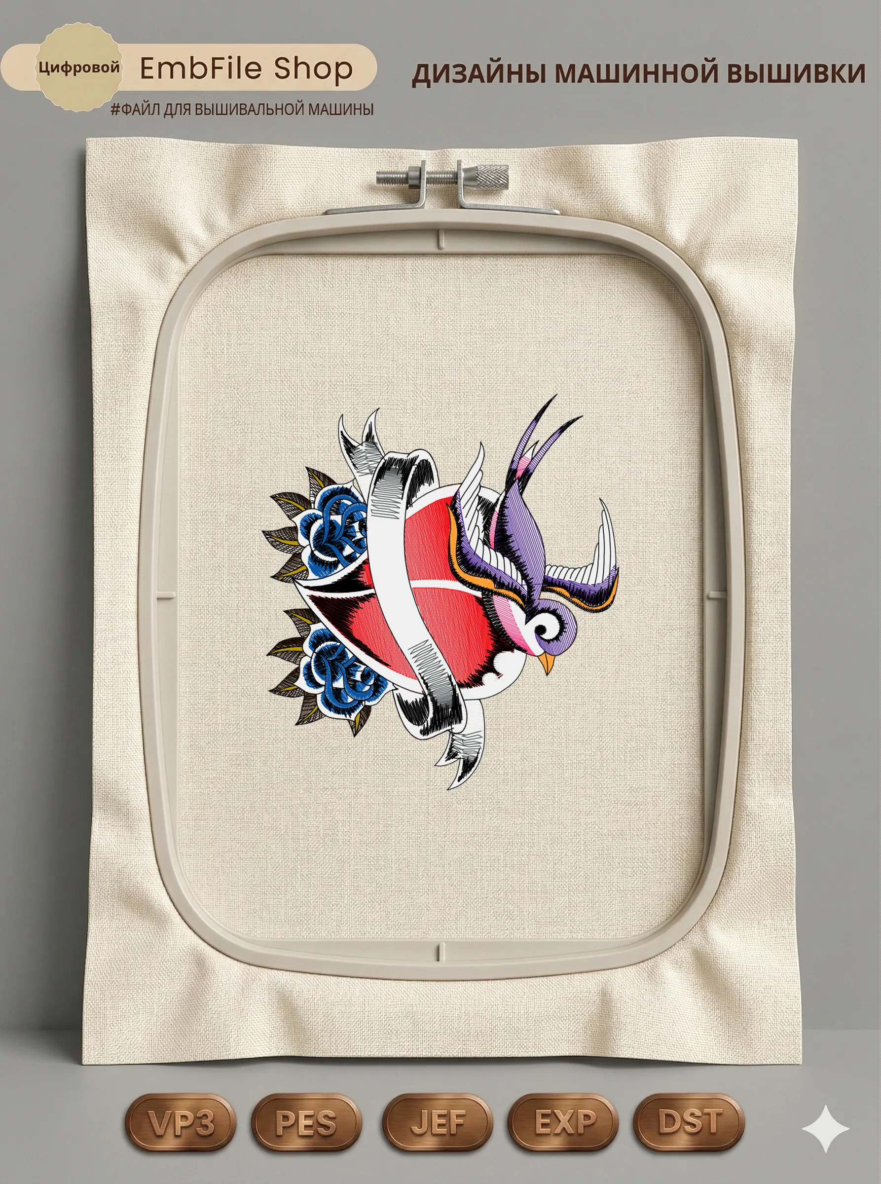 Это цифровой файл для вышивальной машины, а не физический товар (нашивка). Для работы с файлом вам необходимо иметь вышивальную машину и способ передачи файла на устройство (USB-флешка и т.д.).