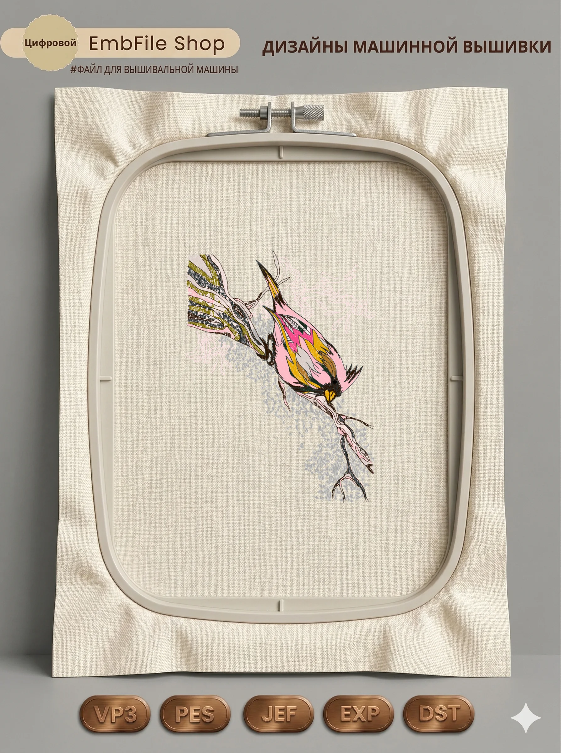 Это цифровой файл для вышивальной машины, а не физический товар (нашивка). Для работы с файлом вам необходимо иметь вышивальную машину и способ передачи файла на устройство (USB-флешка и т.д.).