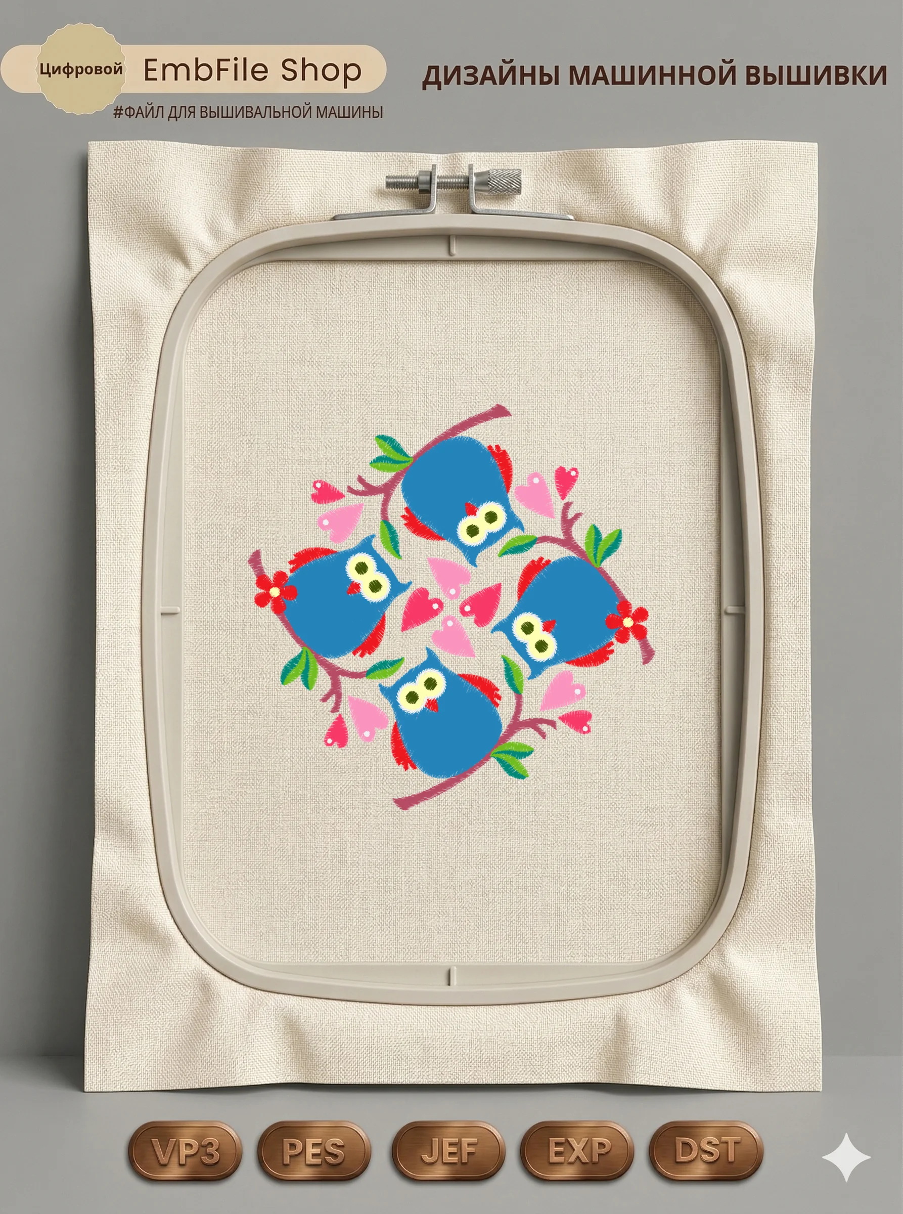 Это цифровой файл для вышивальной машины, а не физический товар (нашивка). Для работы с файлом вам необходимо иметь вышивальную машину и способ передачи файла на устройство (USB-флешка и т.д.).